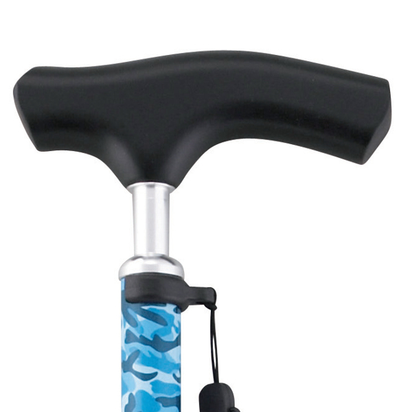 握りやすく手が疲れにくい迷彩柄伸縮ステッキ