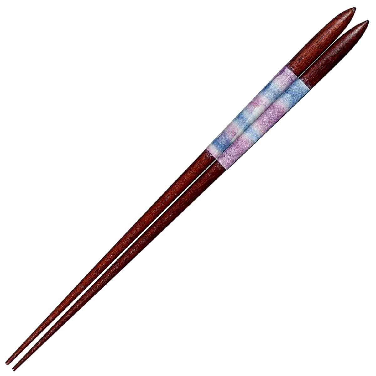 表情豊かな和紙を持ち手の部分に巻いています。異素材の組み合わせが新鮮な、和紙のぬくもりと優美さを感じる趣のあるお箸です。