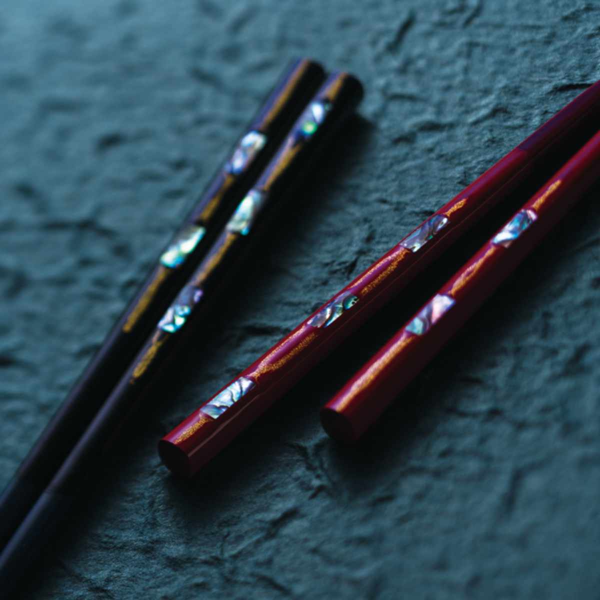 ●宝石のような煌めきが美しい、あわび貝を使ったお箸です。