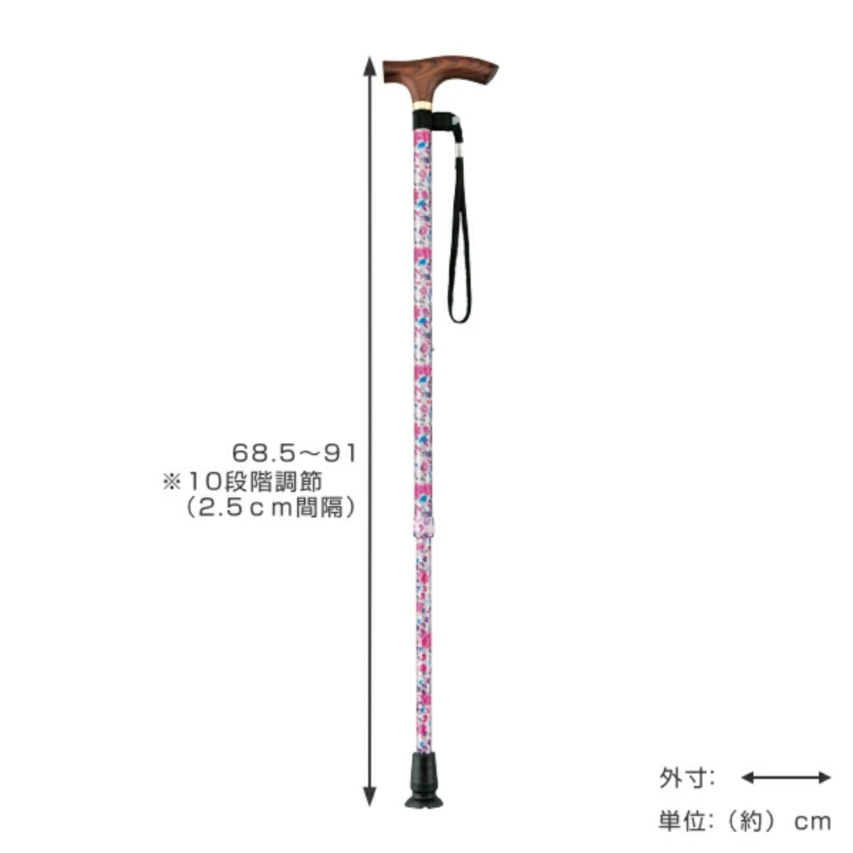 | サイズ | 長さ:約68.5~91cm 伸縮10段階(2.5cm間隔) 杖先ゴム径:16mm |