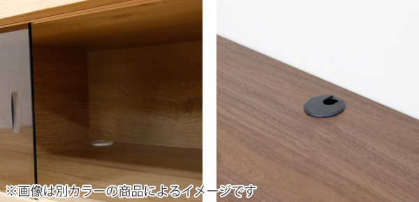 天板とデッキ収納内部には、TVの配線収納に便利な配線キャップが付いています。2箇所に分けて配線できるので、散らかりがちな機器の背面もスッキリと片付きます。