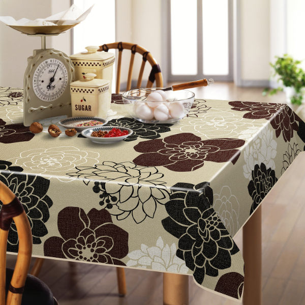 ●落ち着いた色合いと大きな植物の模様が華やかなテーブルクロスです。