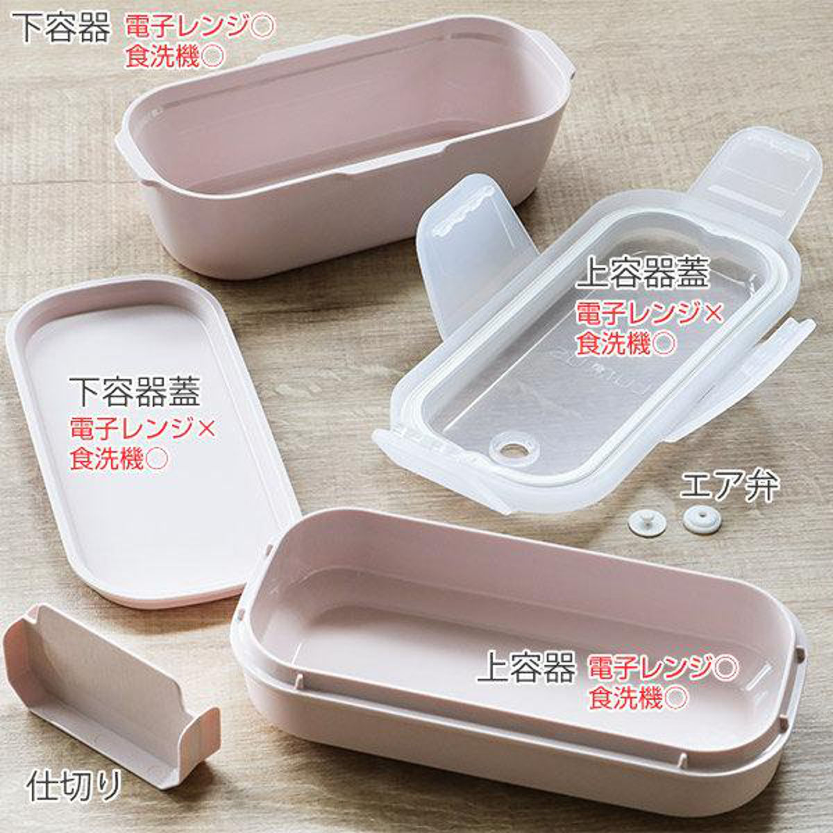 | パーツ別耐熱温度 | 蓋:110度、容器・仕切り・弁本体:140度、弁:180度 |