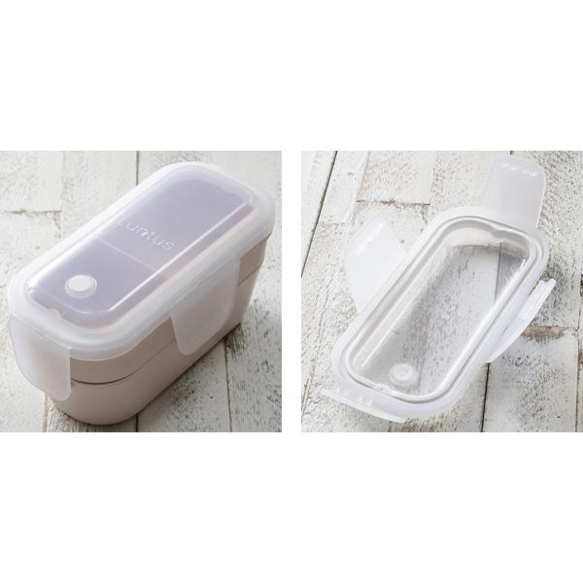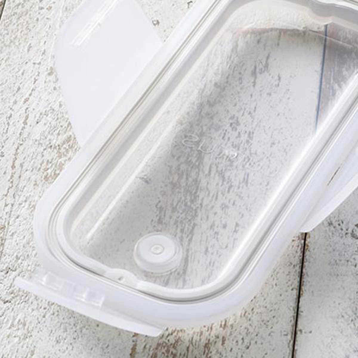 | 材質 | 上容器蓋:ポリプロピレン、熱可塑性エラストマー 下容器蓋・容器・仕切り・弁本体:ポリプロピレン 弁:シリコーンゴム |