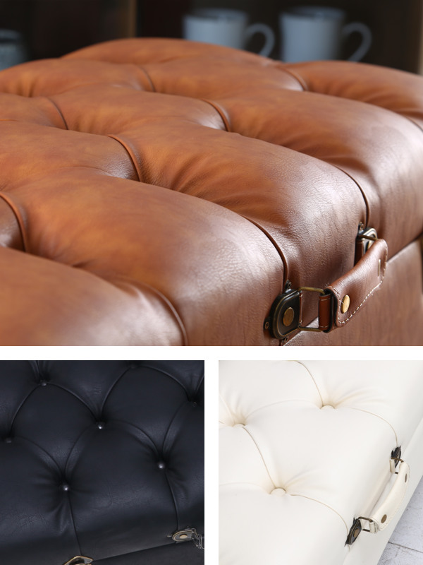 座面はボタン留め仕上げになっていて、レトロな味わいがあります。