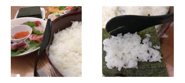 しゃもじが3個付いているので、家族4人でも人が使っているのを待つこともなく酢飯をよそうことができます。しゃもじの真ん中が切り込みが有って寿司飯が混ぜやすくすし飯がしゃもじに付くこともないです。ふたがあればいいのになあと思いました。