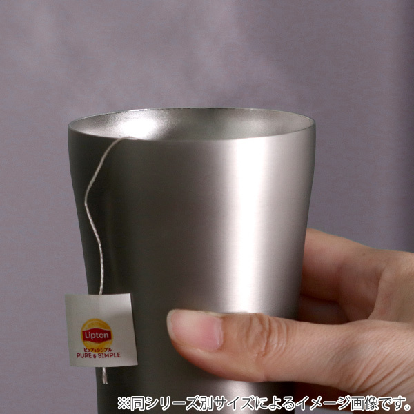 本体表面は、ヘアライン仕上げです。落ち着いた色味のマットな質感で、高級感があります。飲み口の部分は薄くつくられており、口あたりが良く飲みやすいです。