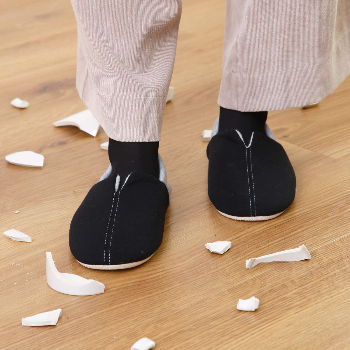 非常時に破片から足を守る「防災スリッパ」