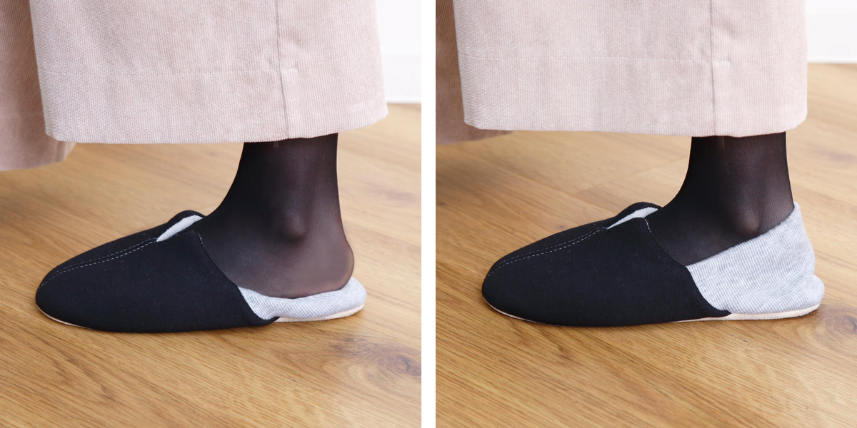 かかとを踏んでも履けるバブーシュタイプ