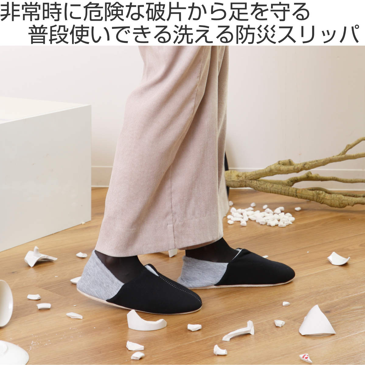 いざという非常時に足を守る、普段づかいできる防災スリッパ
