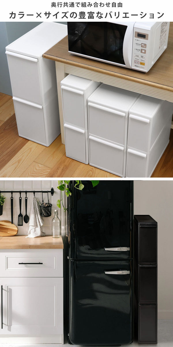 幅14・17・25.5cmの中から、設置場所に合ったサイズ・カラーをお選びいただけます。奥行が同じなので、サイズ違いの同シリーズ商品を並べて使用する事も可能です。