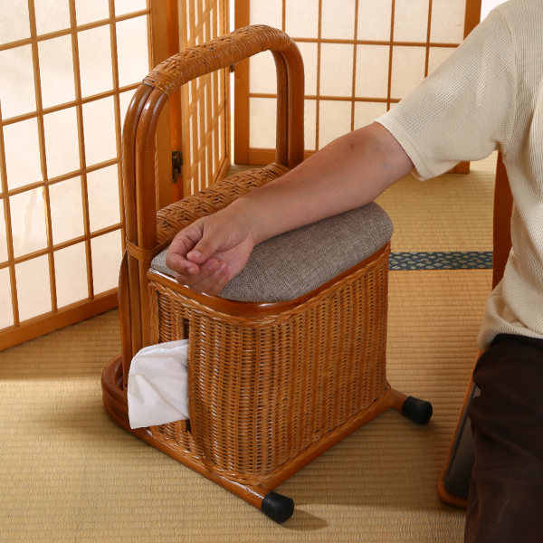 座り姿勢から立ち上がりをサポートしてくれるラタン製ステッキです。腰や膝の負担を軽減して楽に立ち上がる事ができます。ラタン製は軽量なので、持ち運びも楽にできます。