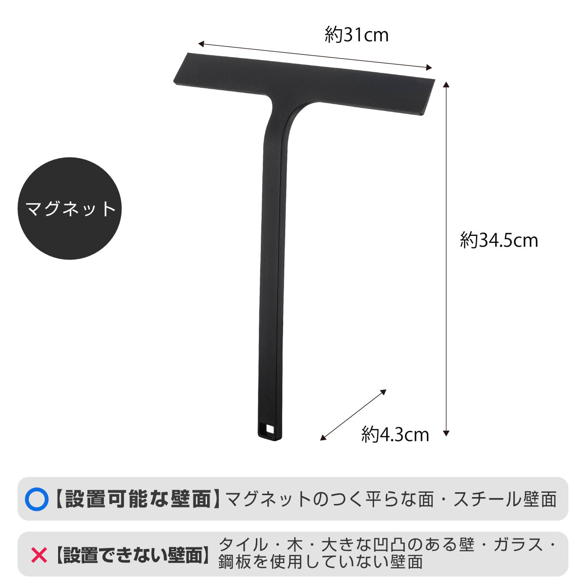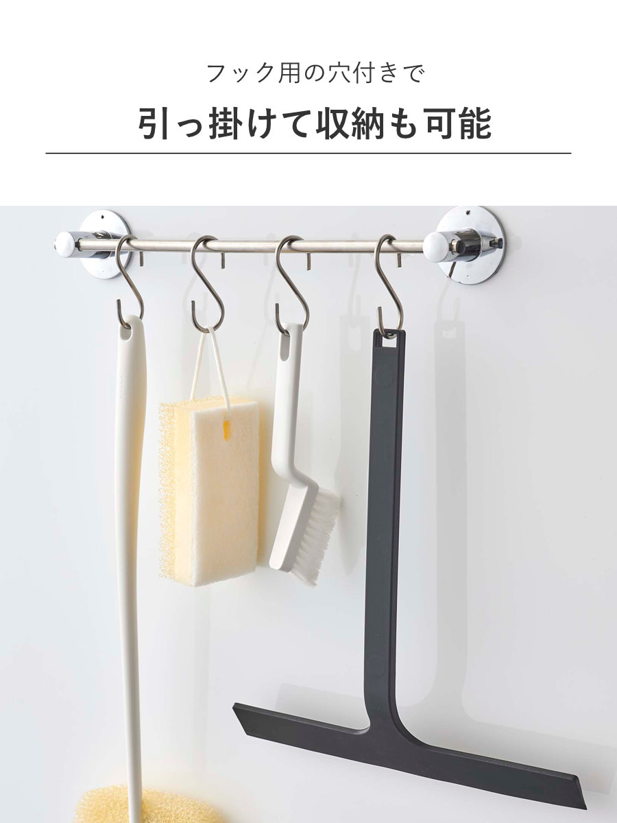 マグネットで浮かせて収納、置き場所に困らない水切りワイパーです。マグネットは埋め込まれているので錆や色移りもありません。