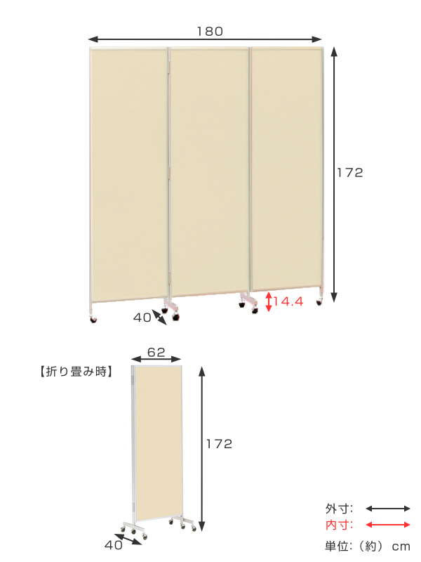 | サイズ | 約 幅180×奥行40×高さ172(cm) 折り畳み時:約 幅62×奥行40×高さ172(cm) |