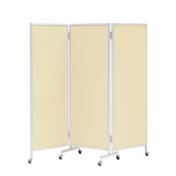 キャスター付きの三つ折り衝立です。移動が楽にできるので、お部屋の間仕切りを簡単に設置できます。急な来客時にもさりげなく目隠しとして使えて便利です。アイボリーの明るい色合いが圧迫感を感じさせずに、お部屋に馴染みます。