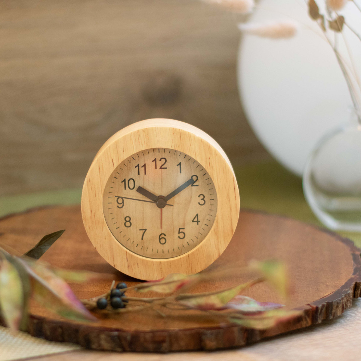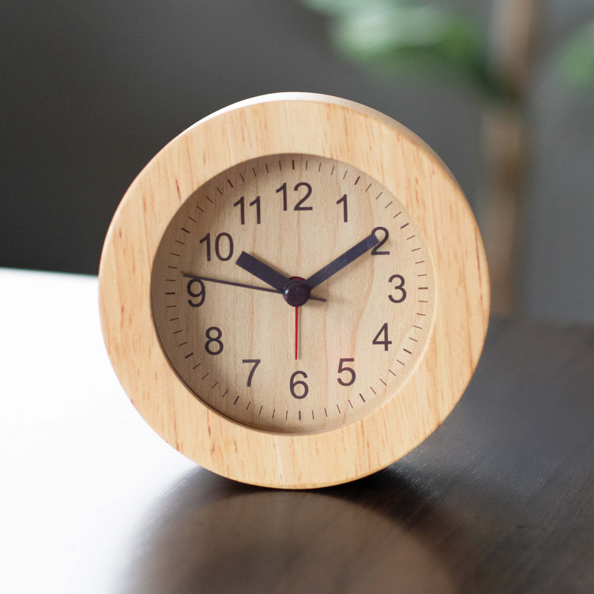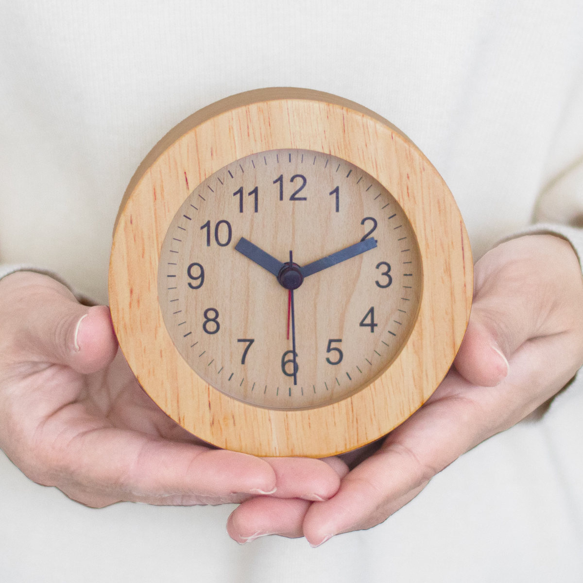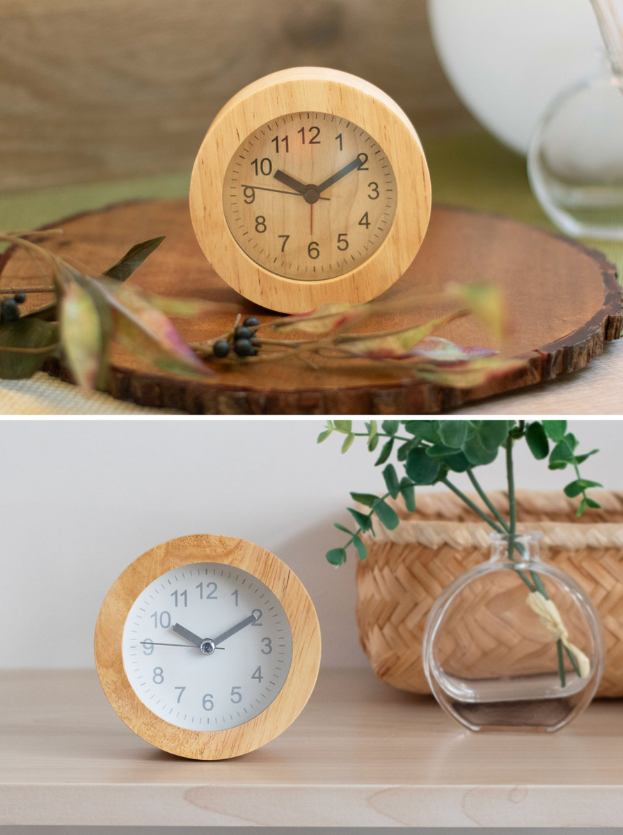 天然木で作られた温かみのある置き時計です。美しい木目が特徴的で、お部屋に置くだけで自然な風合いをプラスしてくれます。
