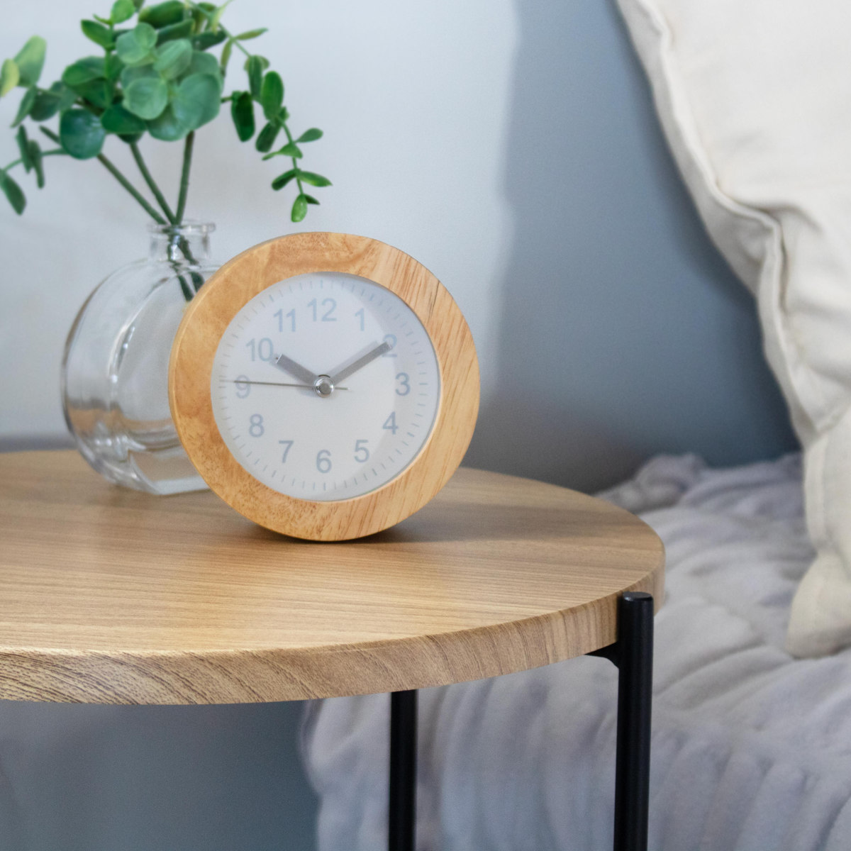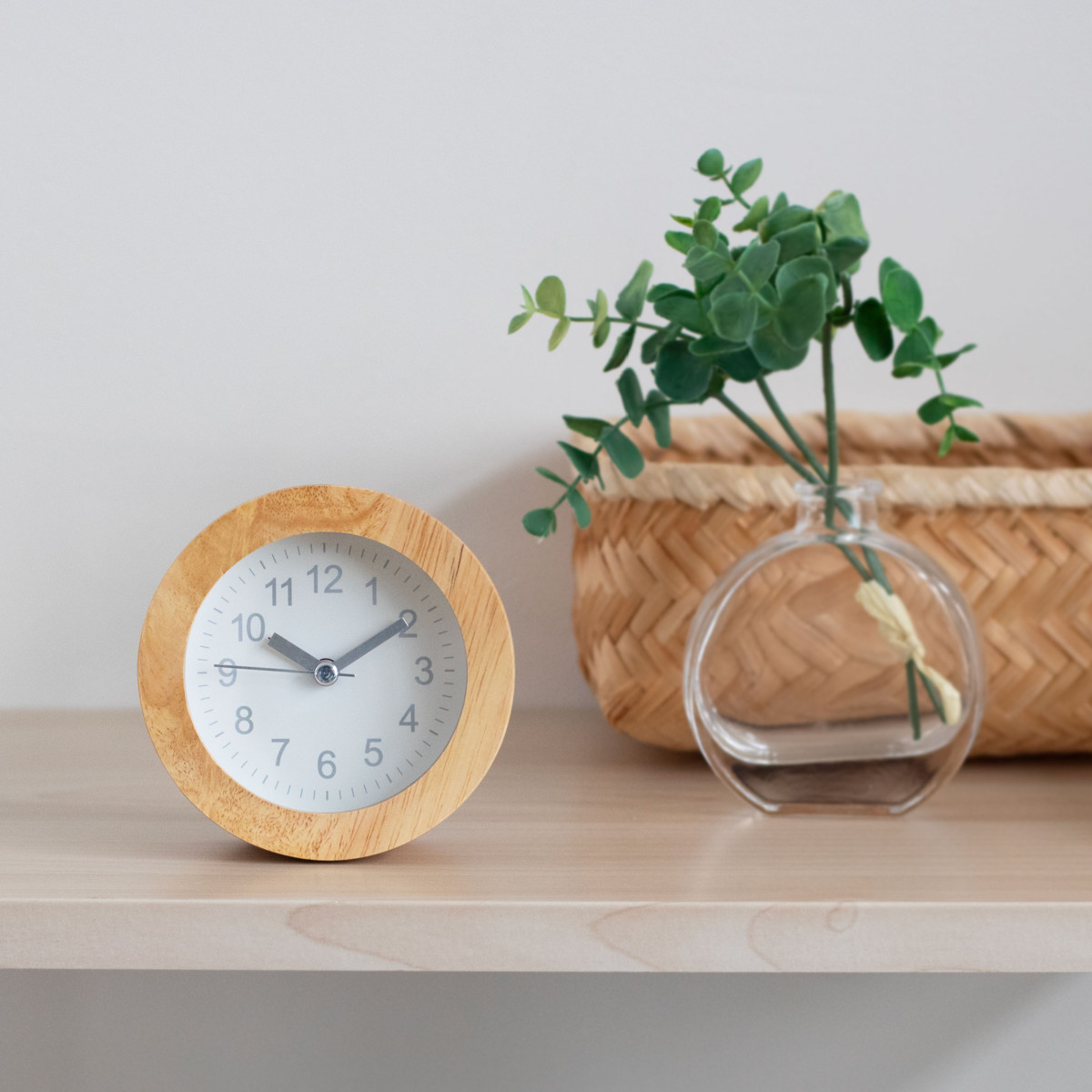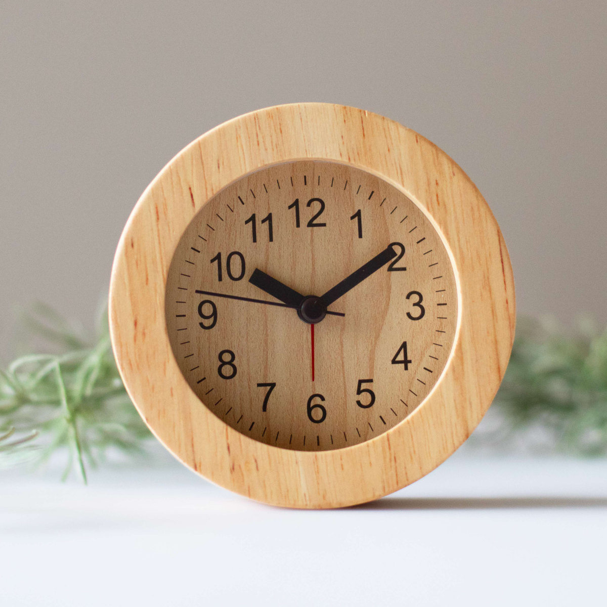 天然木で作られた温かみのある置き時計です。美しい木目が特徴的で、お部屋に置くだけで自然な風合いをプラスしてくれます。
