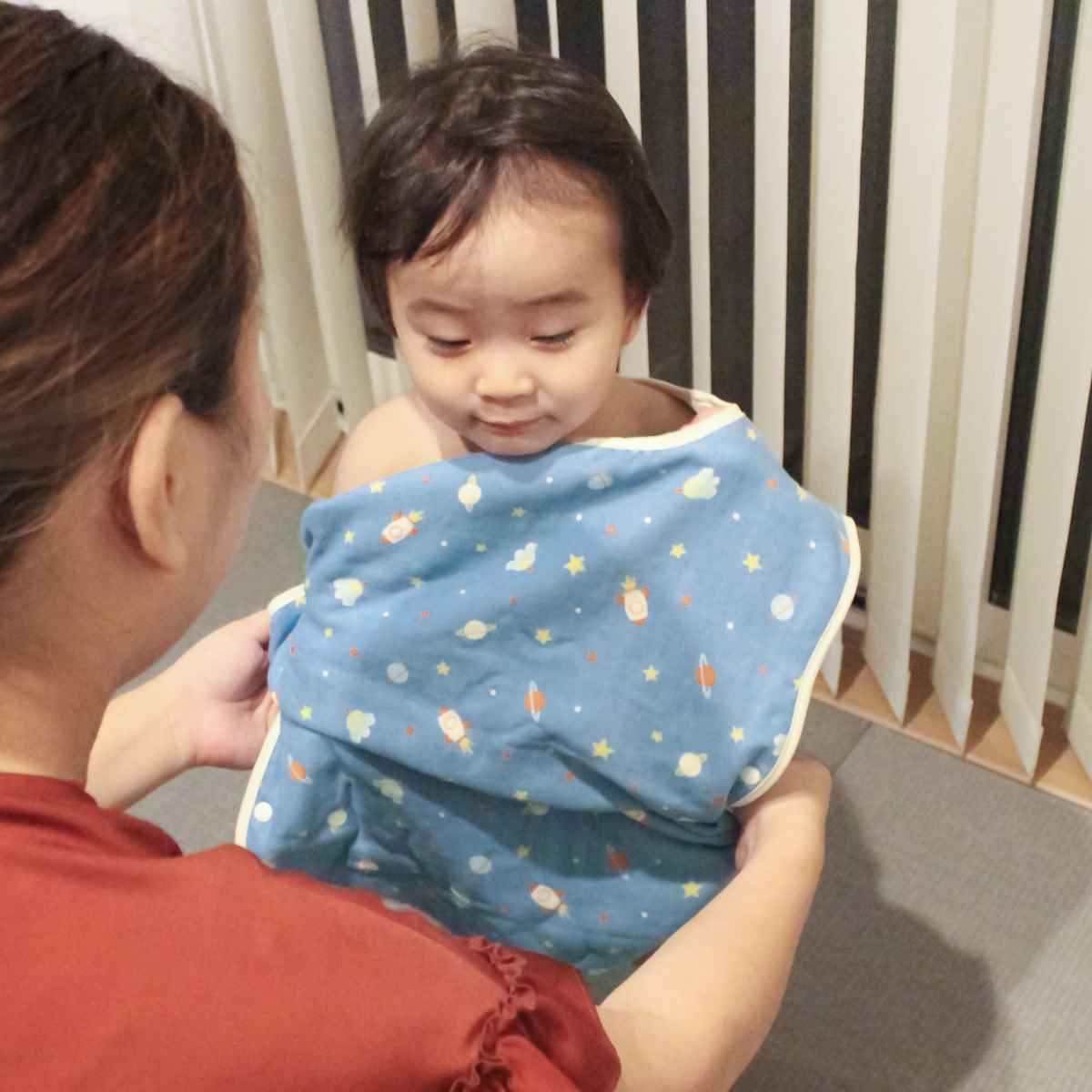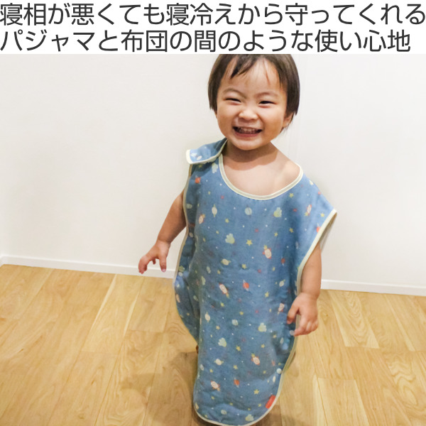 お子さまの快適な睡眠をサポートしてくれるスリーパーです。パジャマと布団の機能を合わせており、夏の冷房による冷えや冬の寒さからお子さまをしっかりと守ります。