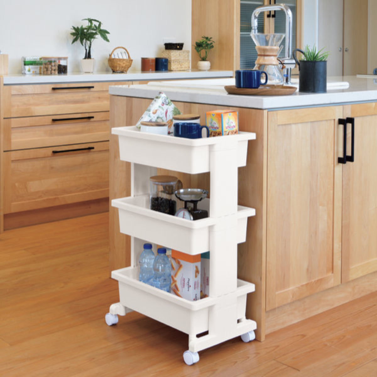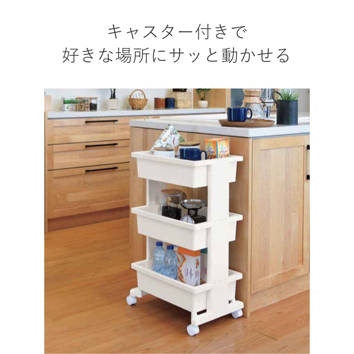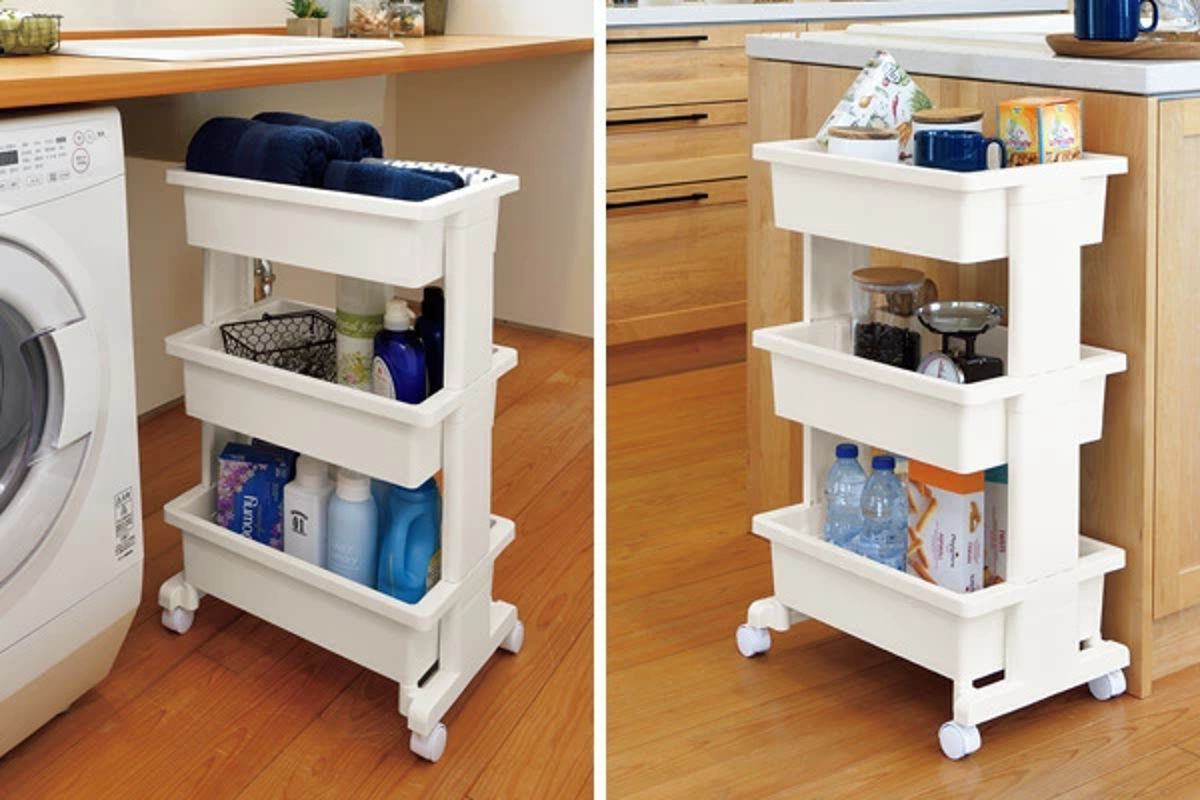 キッチンはもちろん、リビングやランドリーなどさまざまなシーンで活躍します。プラスチック製なので、水回りでも安心してお使いいただけます。