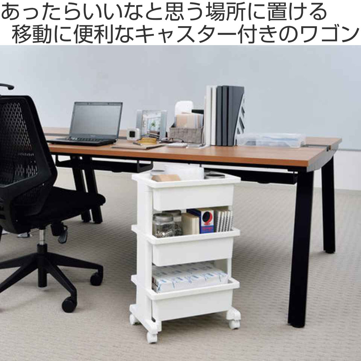 使いたい場所にサッと動かせるモバイルワゴンミニ 3段