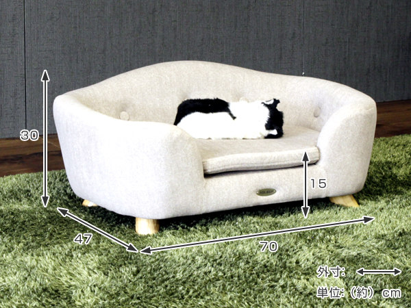 シンプルモダンなデザインのペット用ソファーです。スタンダードなフォルムでインテリアに合わせやすく、滑らかな曲線がワンちゃんやネコちゃんをやさしく包み込んでくれます。