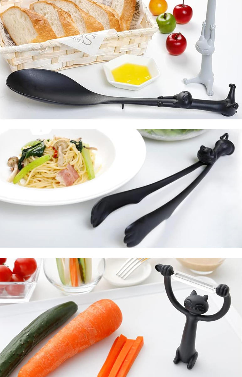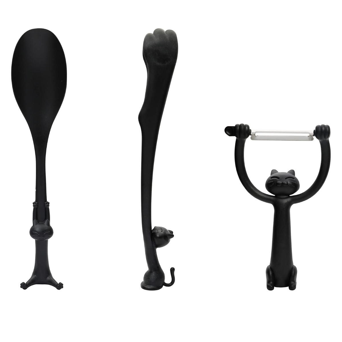 ●さまざまなポーズで遊ぶ猫たちをモチーフにした、マルチスプーン・トング・ピーラーのセットです。