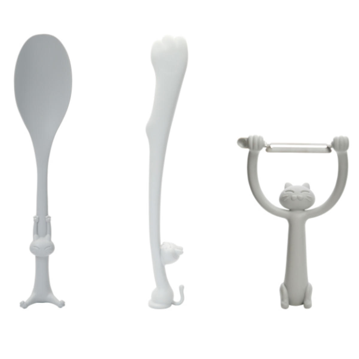 さまざまなポーズで遊ぶ猫たちをモチーフにした、マルチスプーン・トング・ピーラーのセットです。普段使いはもちろん、猫好きのあの人へのプレゼントにもおすすめです。