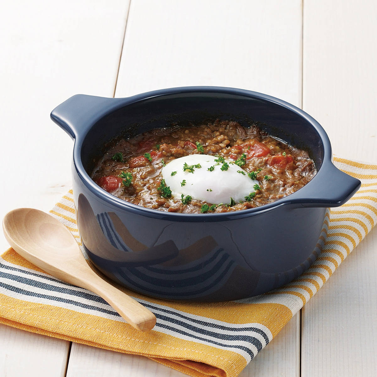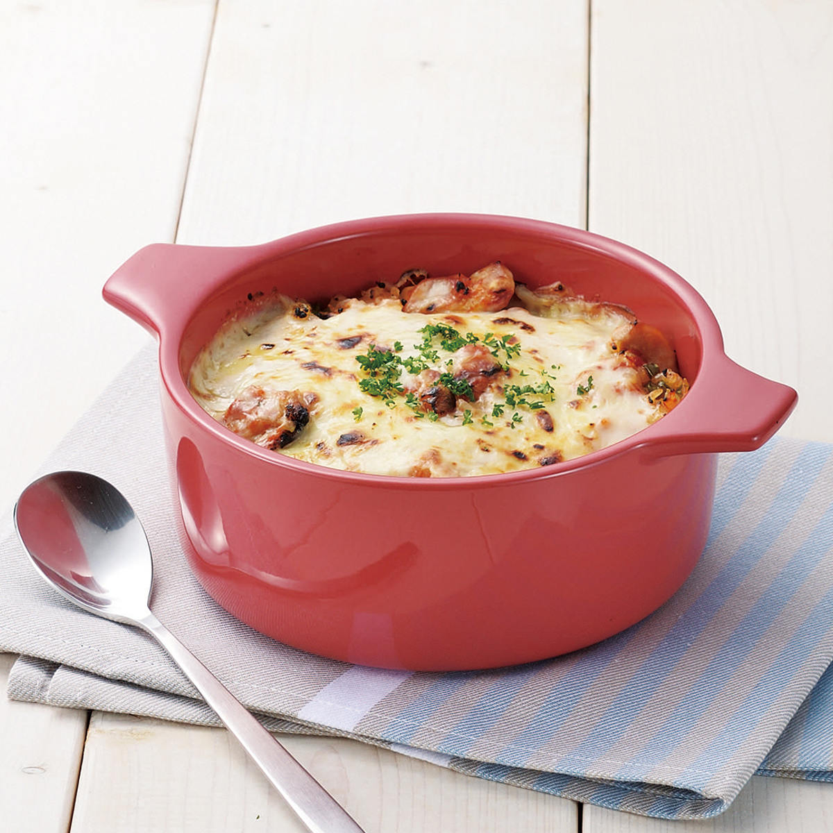 食卓映えする、少し小ぶりの直径15cmの鍋です。「深型設計」で汁物や煮込み料理はもちろん、グラタンなどオーブン料理まで手軽に作れます。オーブン・電子レンジ調理専用で、具材を入れてチンすれば、火の番いらずで手軽に一品完成します。調理をしてそのままアツアツを食卓に出せるので、洗い物も最小限で済み、時短になるのが嬉しいポイントです。※ガス火・IHには使用できません。