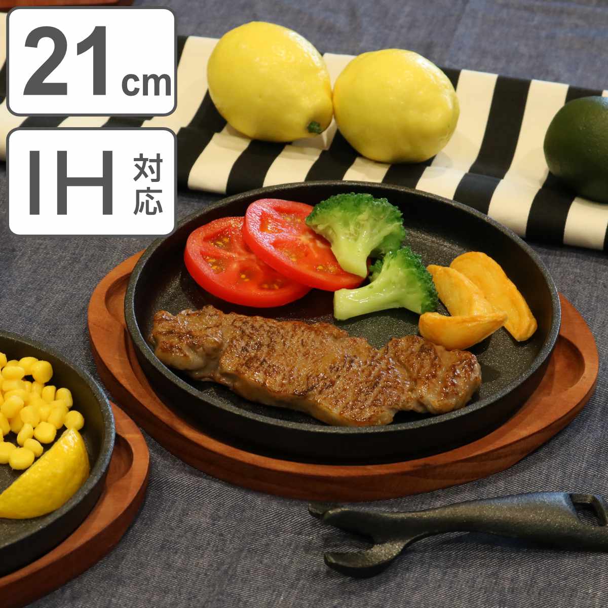 | 材質 | ステーキ皿、ハンドル:鉄鋳物(焼付塗装) 木皿:天然木 |