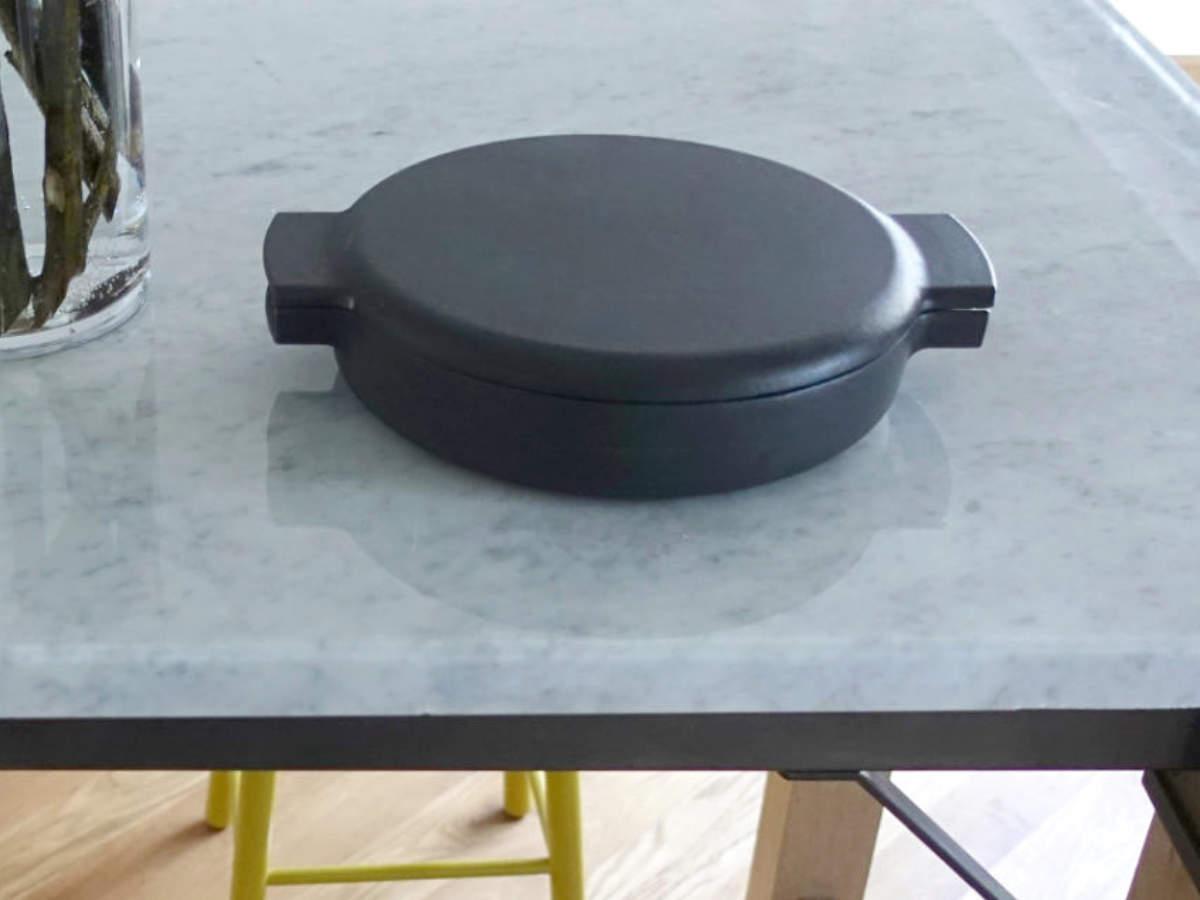 | サイズ | 蓋を閉じた状態:約 直径24(取手含め29.4)×高さ6(cm) 蓋:約 直径24×高さ1.3(cm) 鍋:約 直径24(内径23)×高さ4.7(cm) 【質量】蓋:1.8kg、鍋:2.2kg |