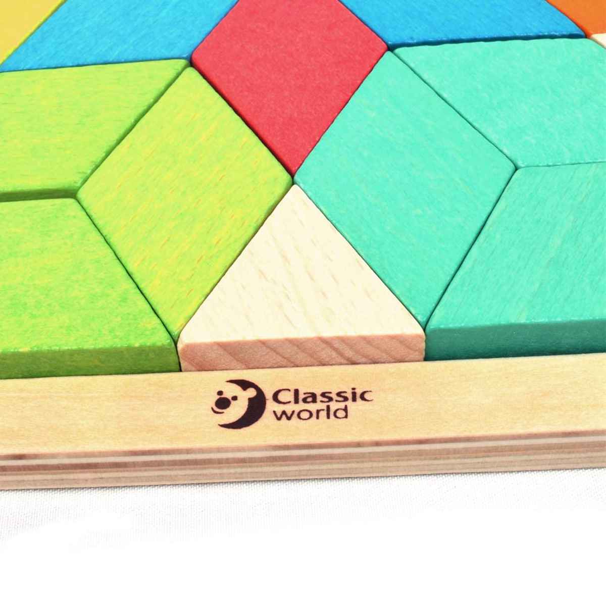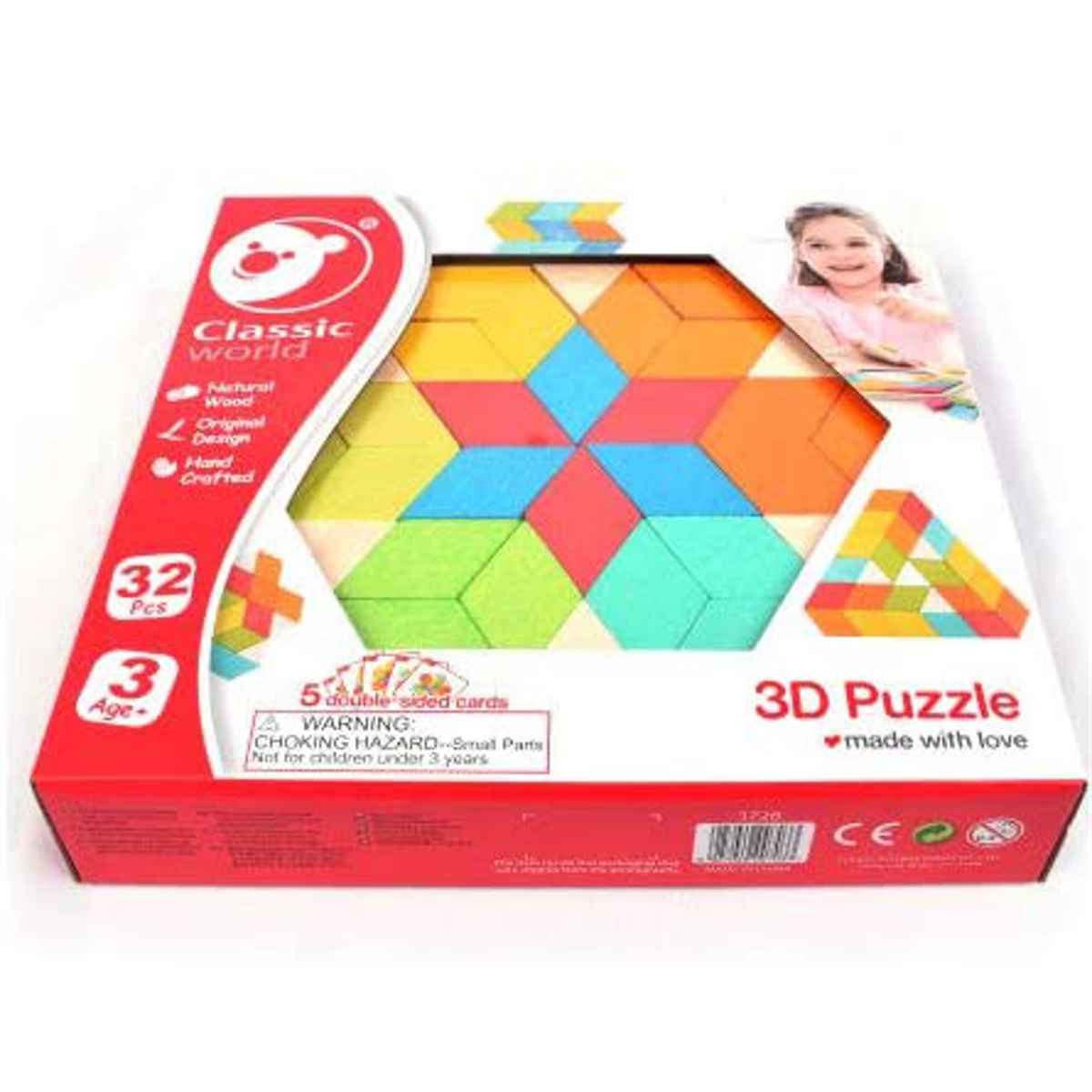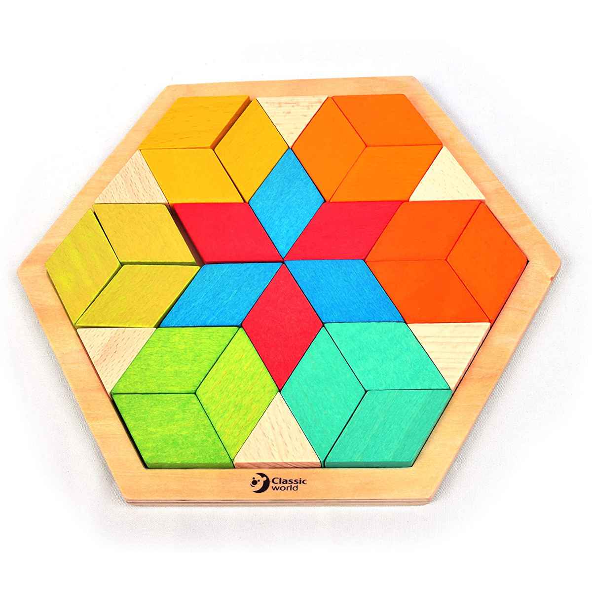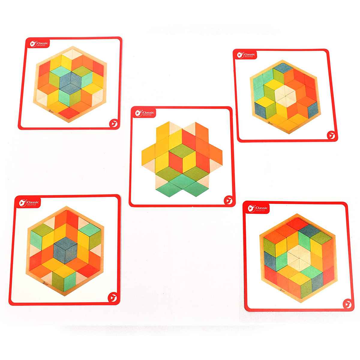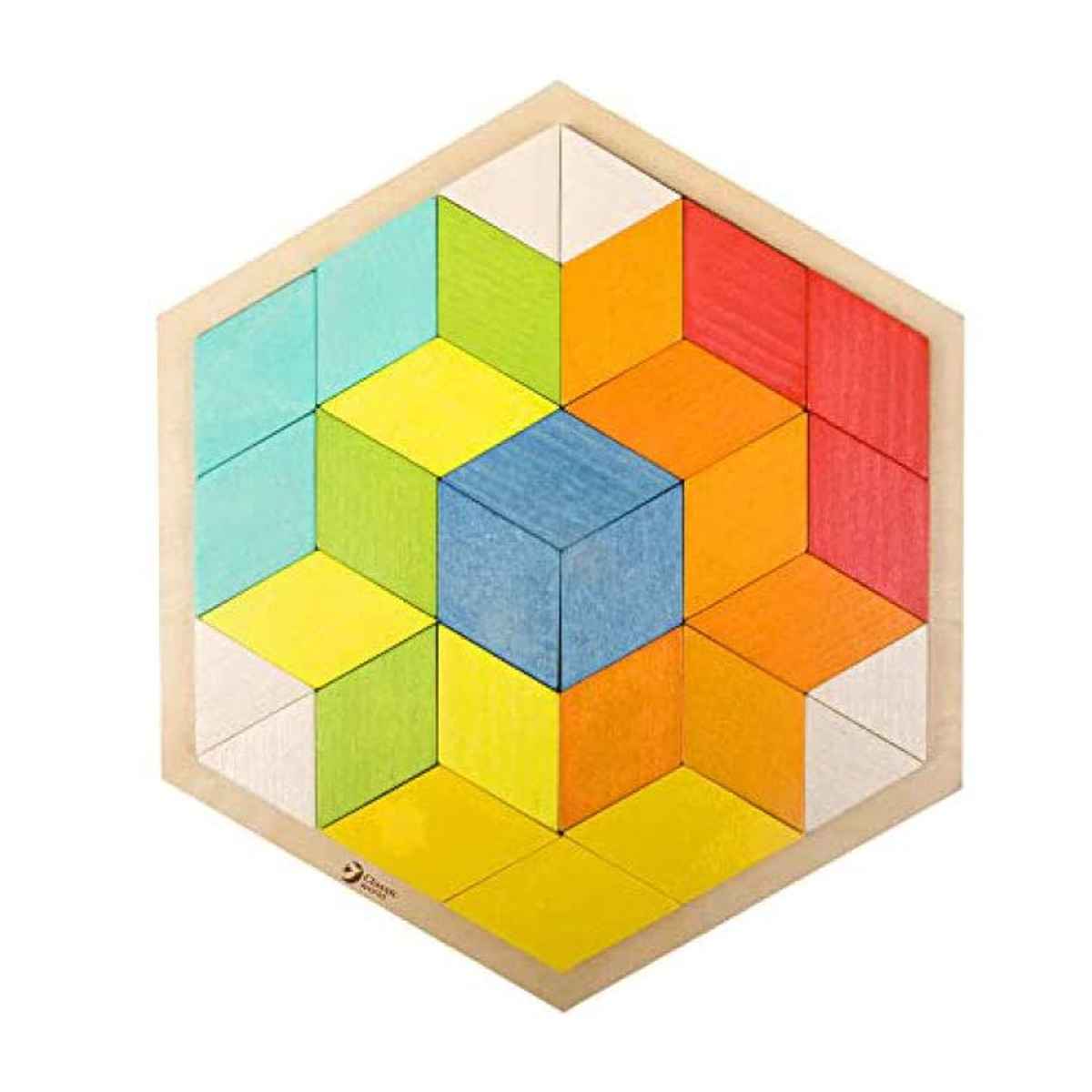 三角形とひし形のパーツを使った3Dパズルです。図形を組み合わせることにより、視覚的に立体に見える平面図形を作ることができます。平面と立体図形、配色などの関連性を遊びながら学んでいきます。お子さまの想像力を働かせてカラフルな3Dデザインを創り出し、できあがった作品をインテリアとして飾って楽しむのもおすすめです。