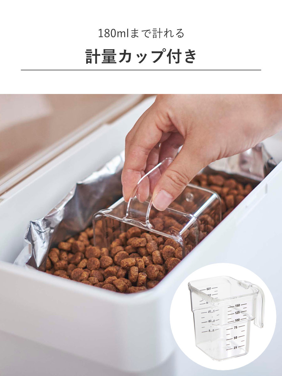 | 容量 | ドライペットフード:約4kg 袋ごと:3kg 計量カップ:180ml |