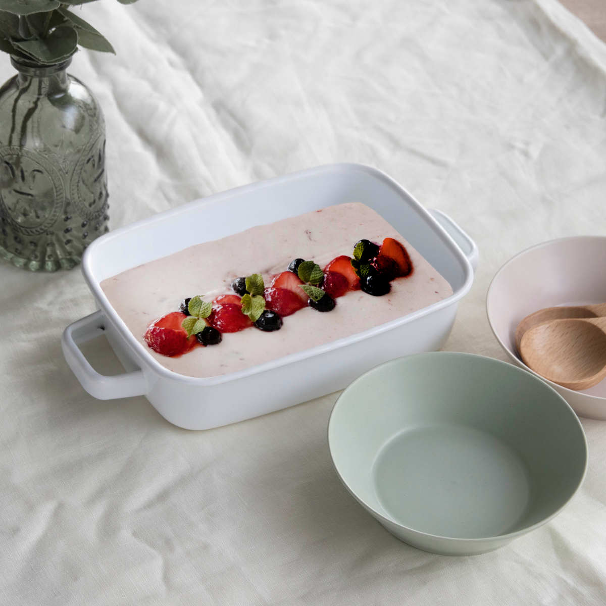 メイン料理だけでなくデザートにも使えます。ケーキ型にしたり、温めてそのまま冷蔵庫で冷やしたスイーツも楽しめます。爽やかで清潔感のあるホワイトカラーはどんな料理も美しく見せてくれます。