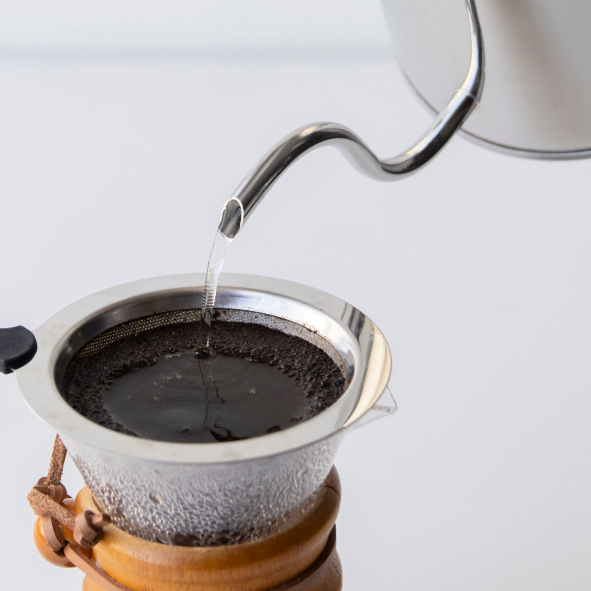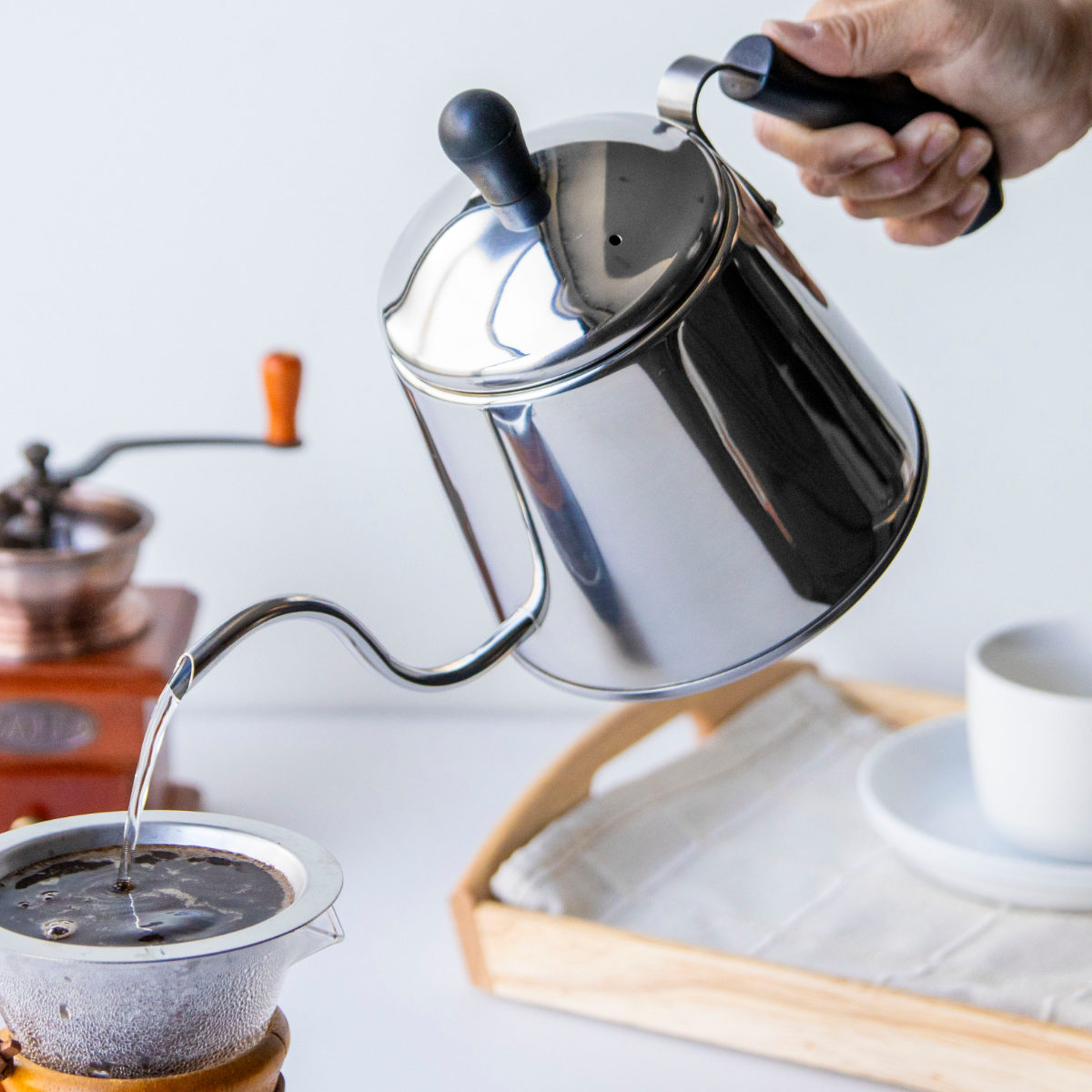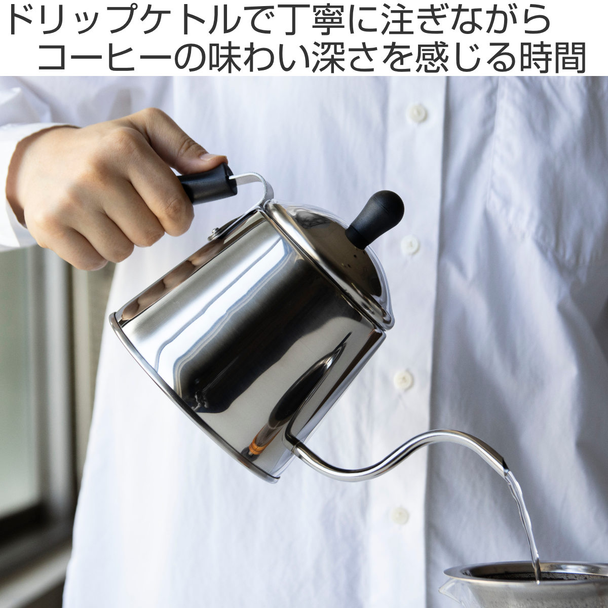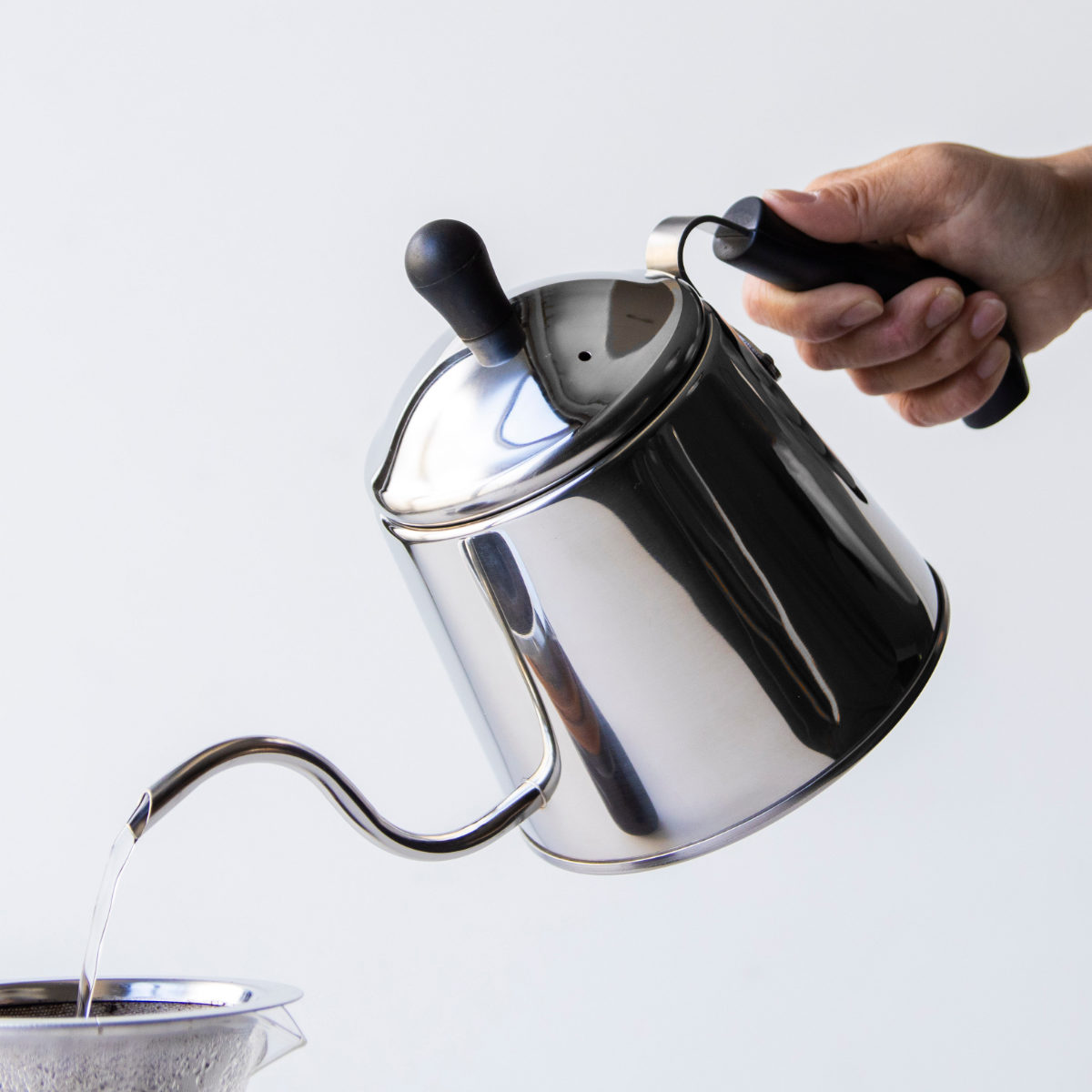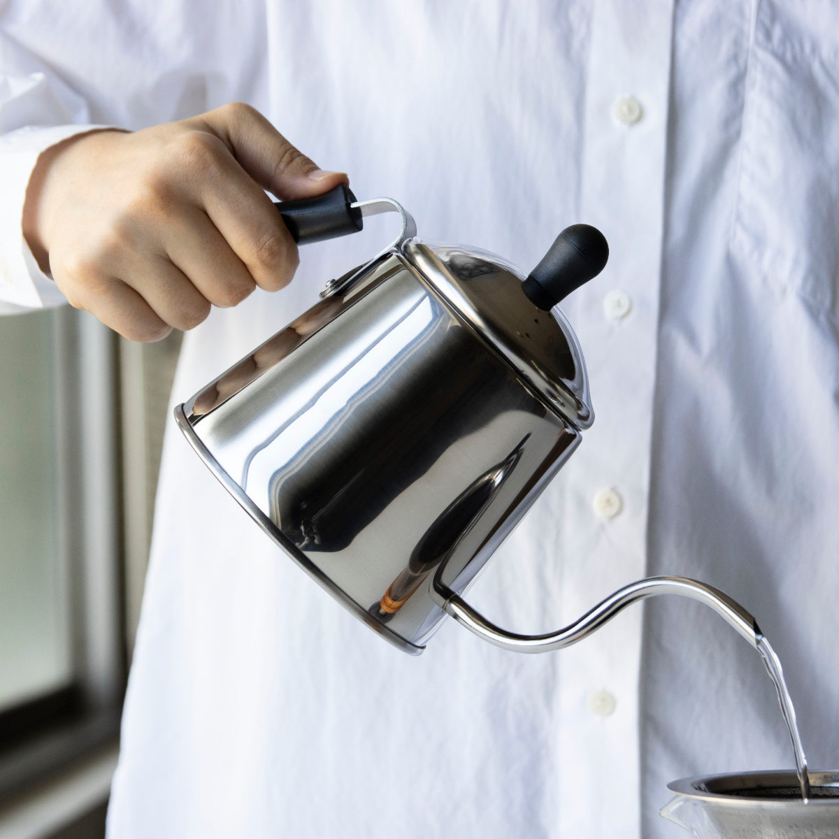 お湯を一定の量で静かに落とすことができ、微妙な調節も自在にできる細口です。