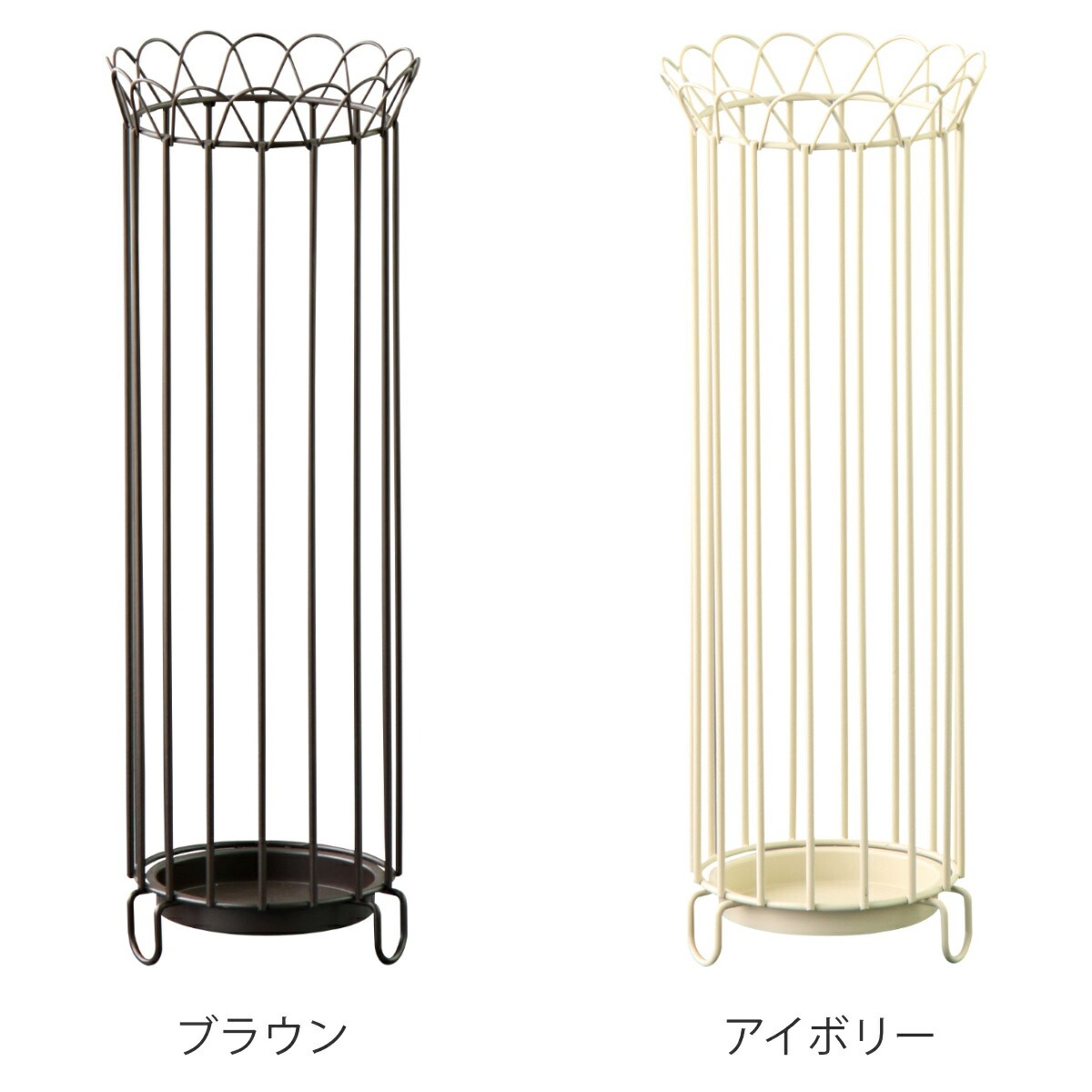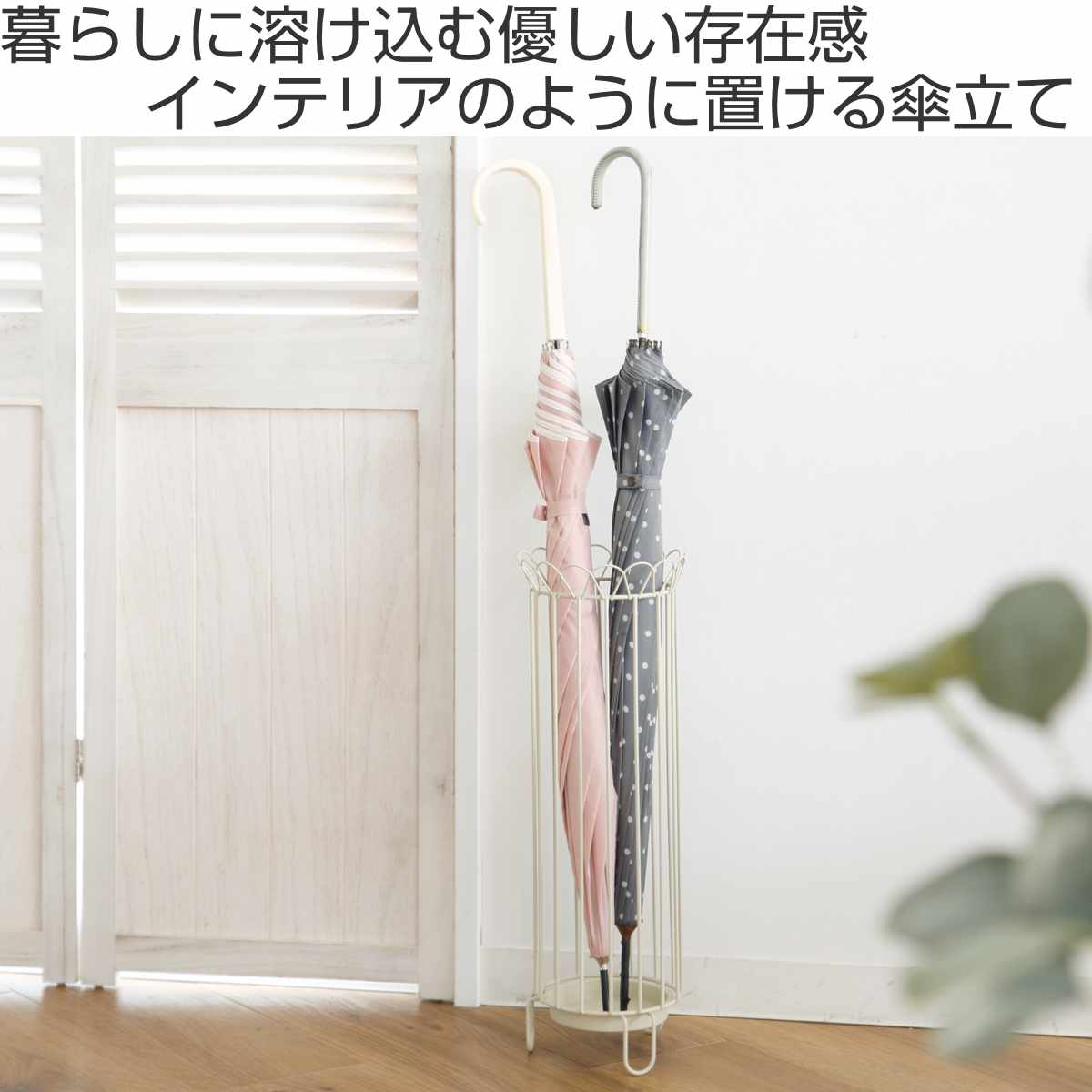 レトロなデザインが玄関のアクセントになる傘立てです。インテリアに合わせやすいブラウンとアイボリーの2色からお選びいただけます。コンパクトなサイズなので、玄関に省スペースで設置できます。