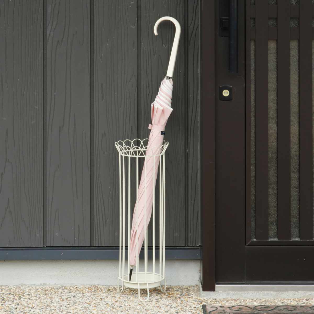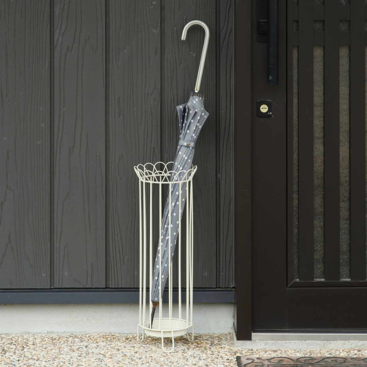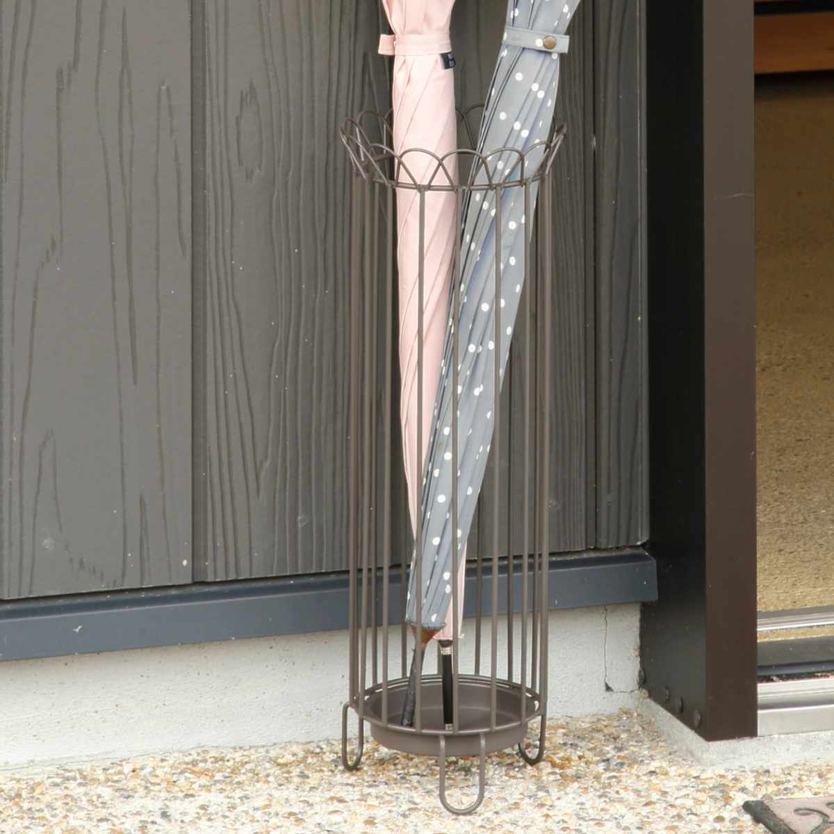 屋外使用対応のため、家の玄関の外やお店の前などにも設置できます。スチールのみを使用しているので、風通しが良く、傘を素早く乾かしてくれます。