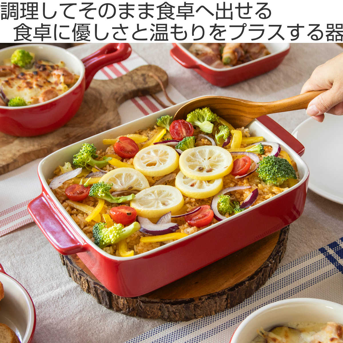 素朴な風合いのある陶磁器製のグラタン皿です。グラタンやラザニア、フレンチトーストなどの調理はもちろん、揚げ物の温め直しにも便利です。どんな食卓にも馴染みやすく、ほっこりとした温かみのある雰囲気を演出します。