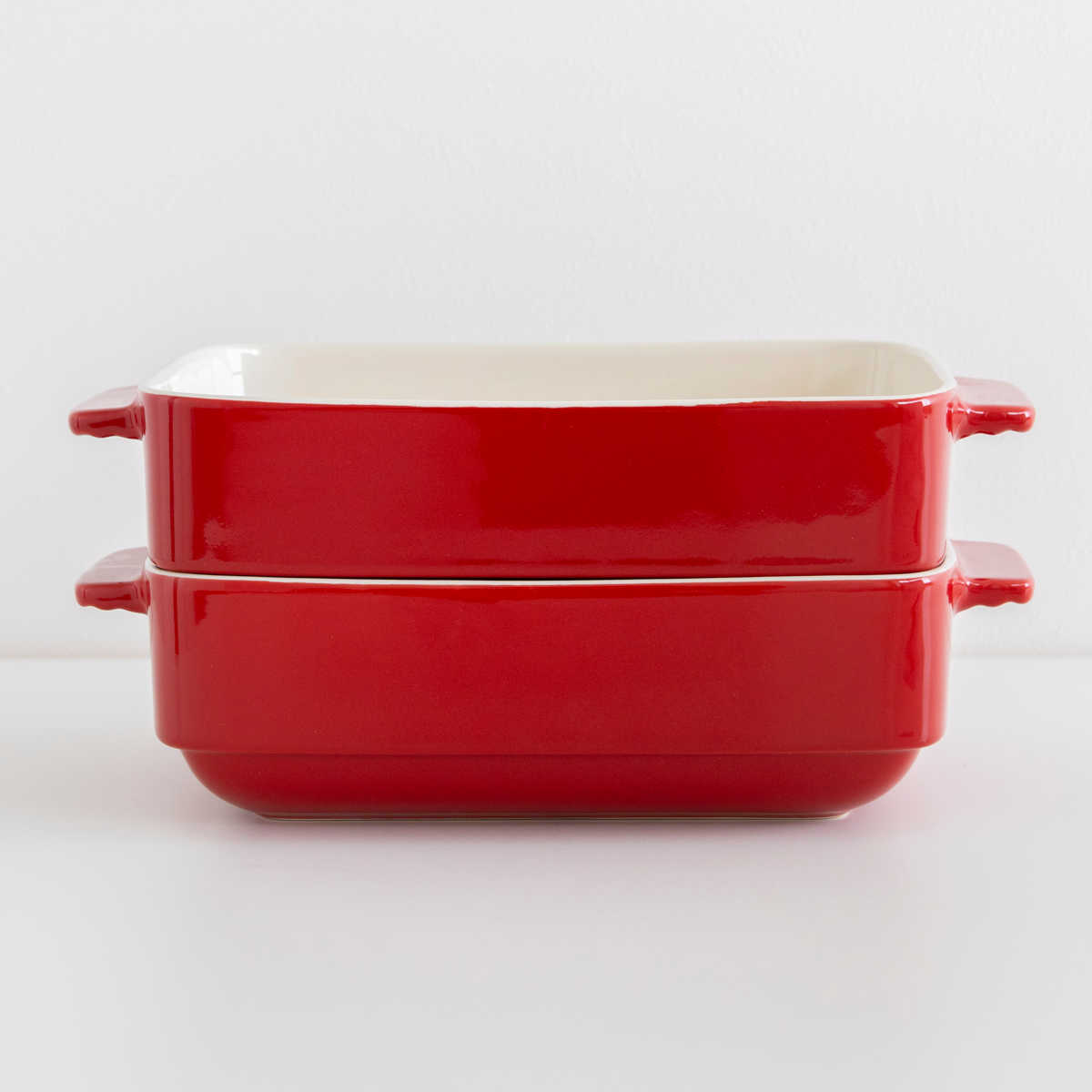 食器棚でかさばりがちなグラタン皿もスタッキングできるので、複数個揃えて使用してもコンパクトに収納できます。