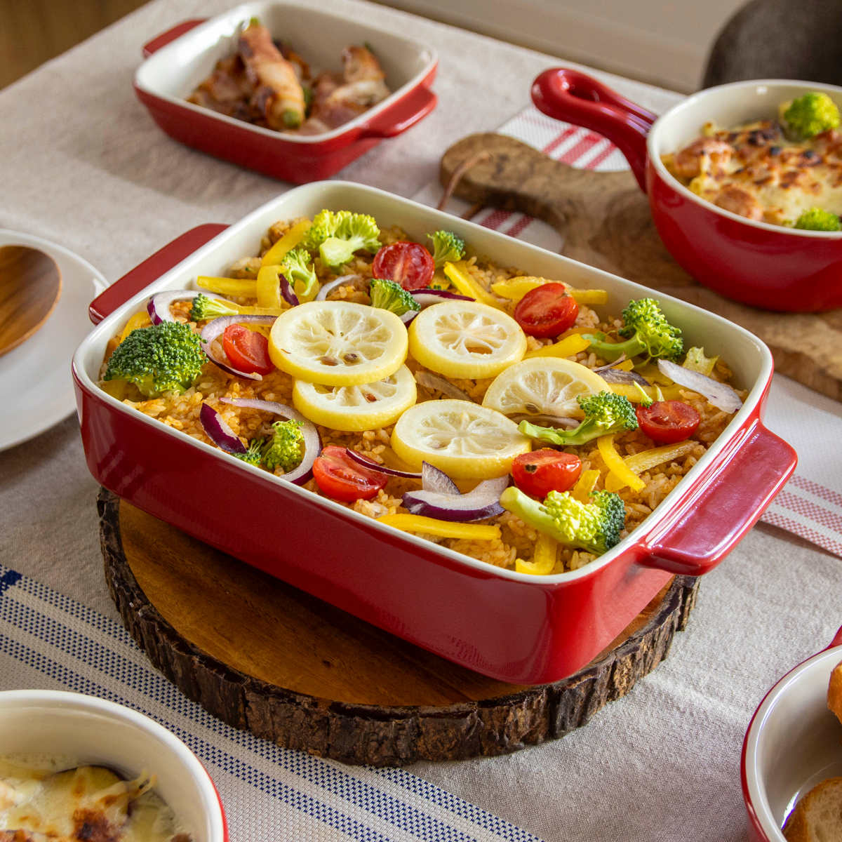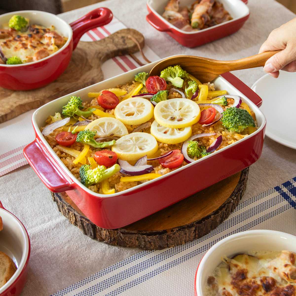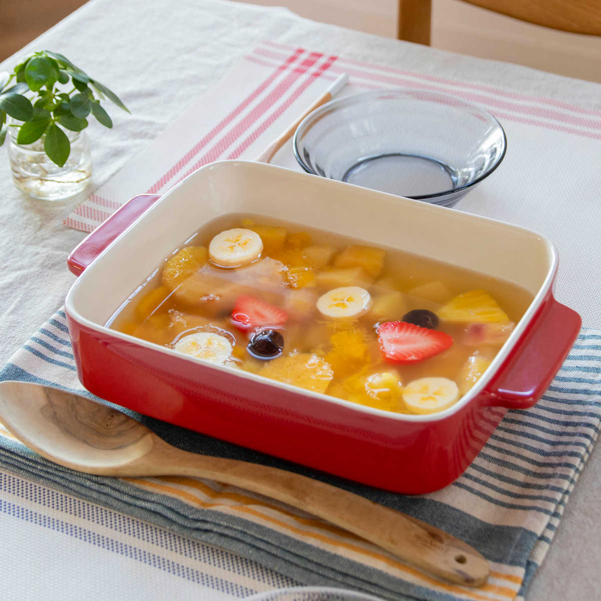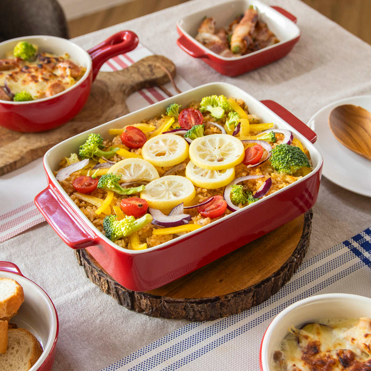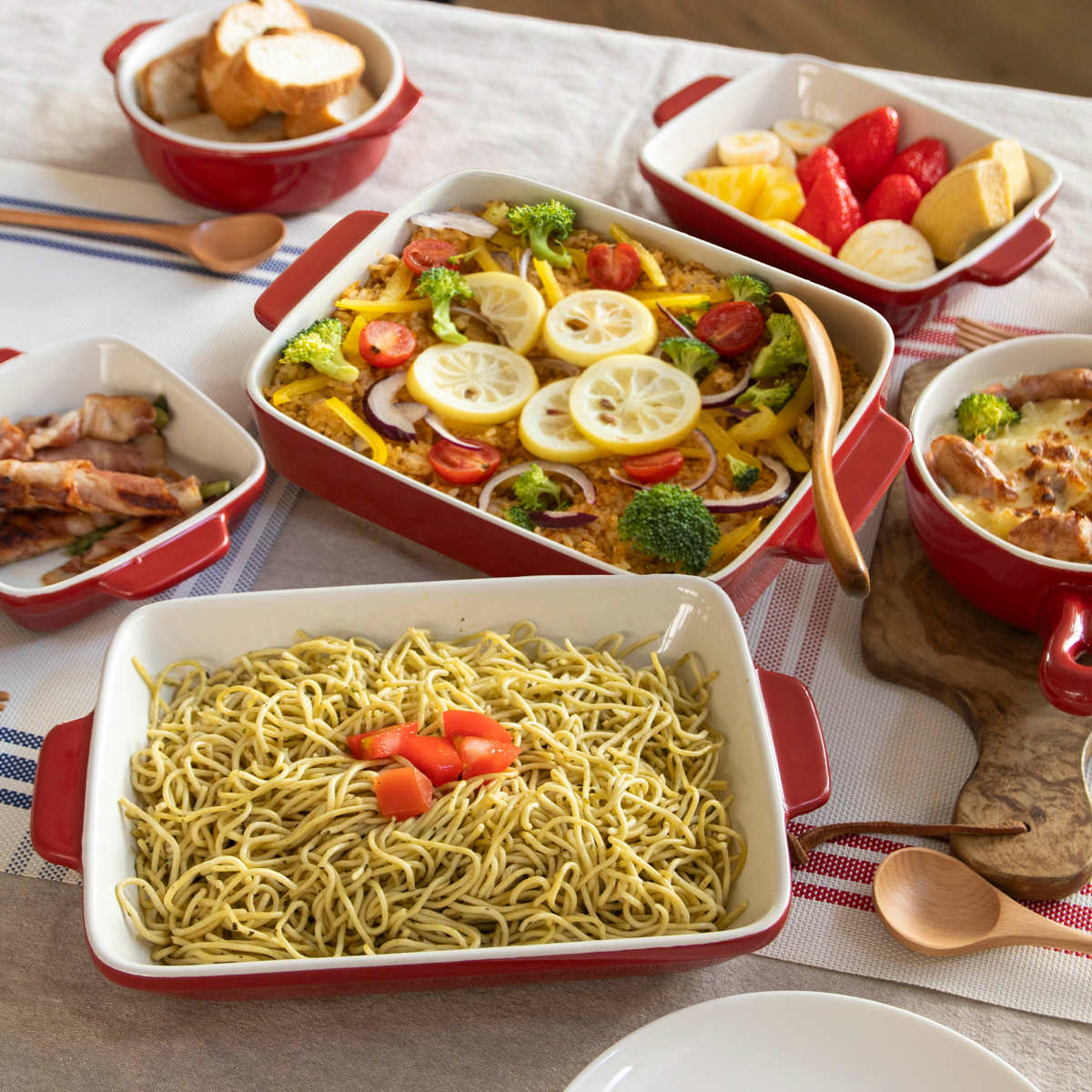 グラタンやドリア、ラザニアなどのオーブン料理の他にも、程良い深さがあるのでティラミスやフレンチトースト、ブラウニー、パウンドケーキなどのお菓子作りにも役立ちます。いろんな用途に使えて料理の幅が広がります。忙しい朝も、チーズや残り物のおかずを入れてオーブンで加熱すれば時短になり、朝食にもおすすめです。深さがあるのでシチューや煮込みハンバーグの器としても使えます。