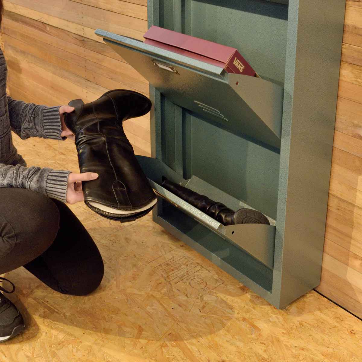 ロッカーをイメージした薄型のシューズラック