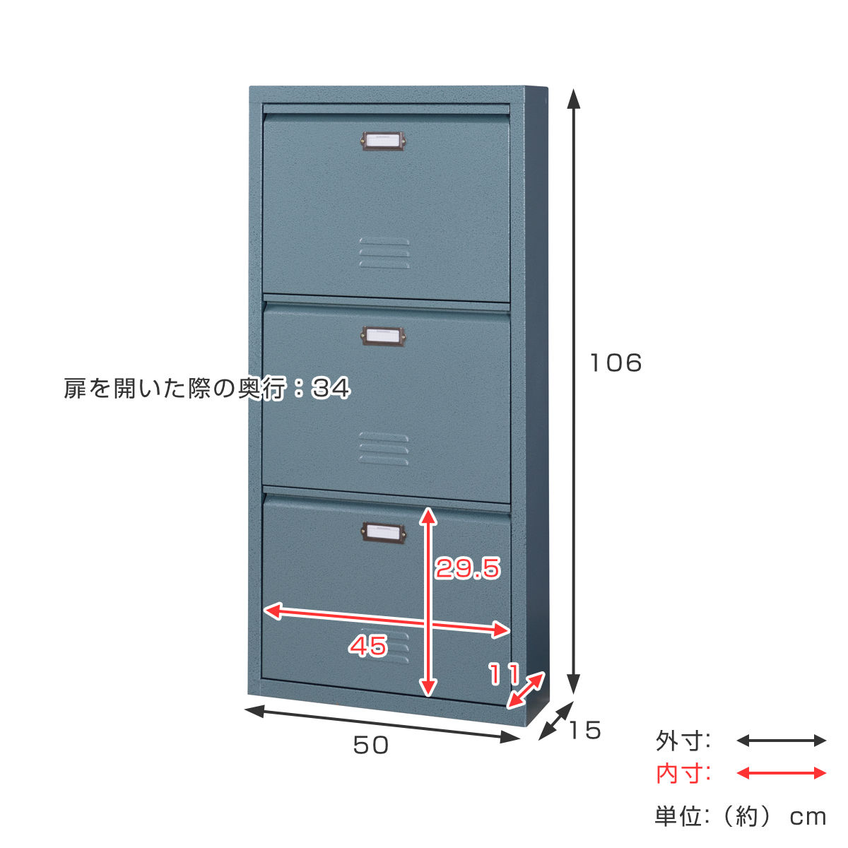 - 外寸:約幅50×奥行15×高さ106cm