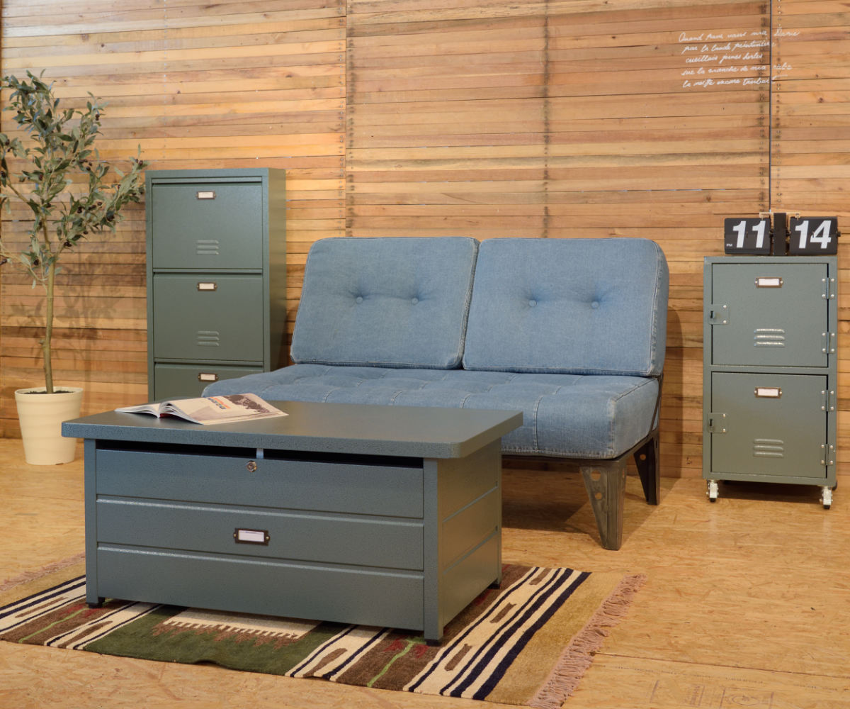 表面をハンマーで叩いて、凹凸のある模様を付けた「ハンマートーン仕上げ」が良い味を出しています。インダストリアルや男前インテリア、ビンテージ風などの空間におすすめです。