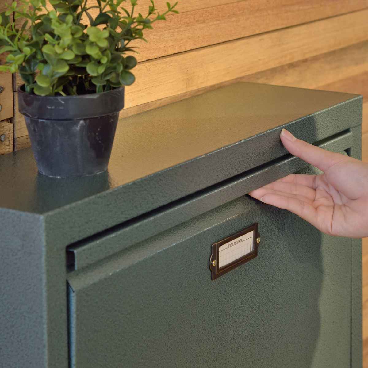 扉の上部に溝のように奥へ掘り込まれたフラットタイプの取っ手なので、狭い場所に設置しても邪魔になりません。どこからでも指を引っ掛けて開くことができます。