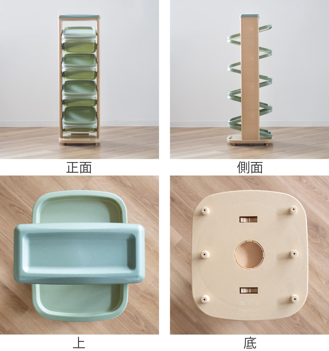 | 材質 | 天板・ターンテーブル:スチロール樹脂 側板:ABS トレー:ポリプロピレン |