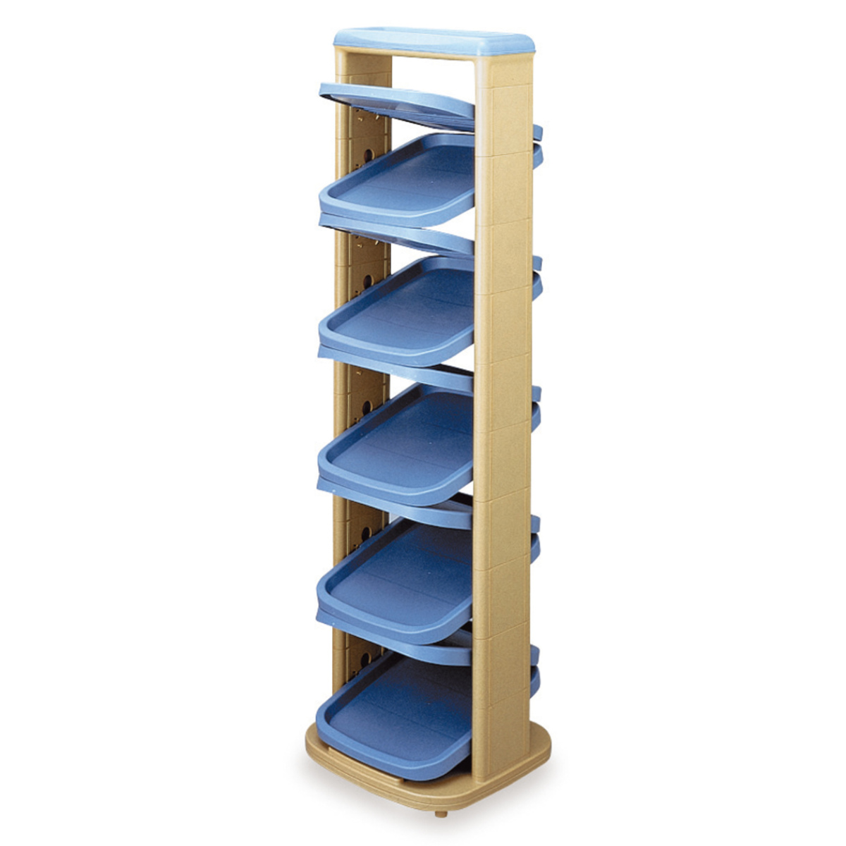 前後互い違いに収納できる、360度回転式シューズラック