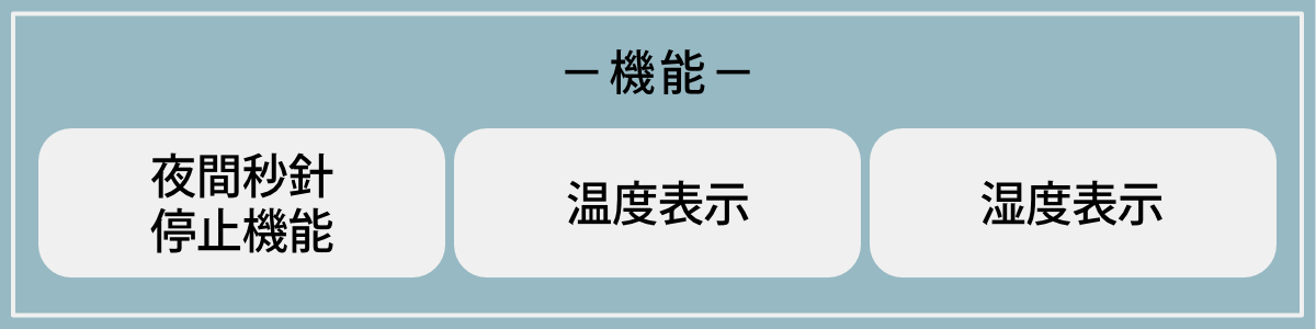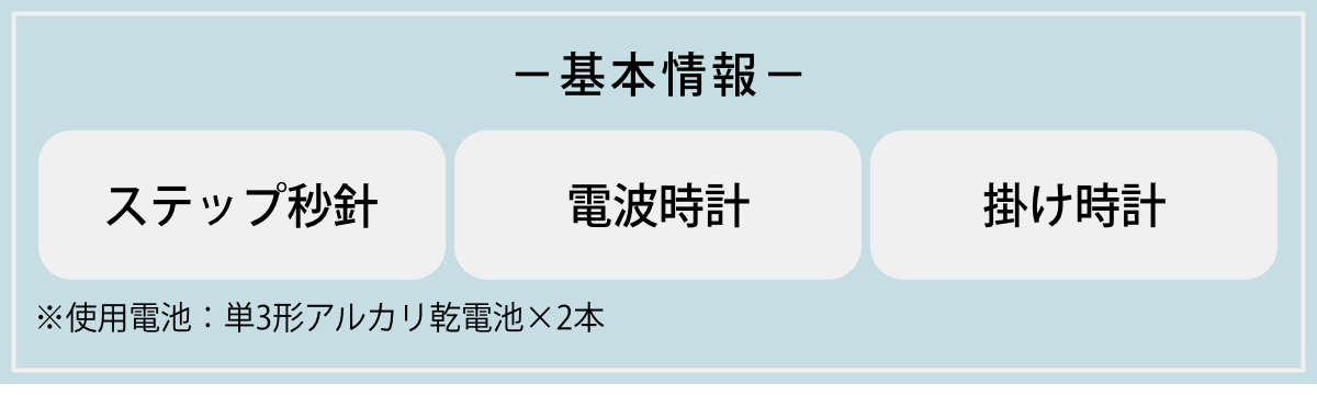 1秒1秒、カチカチと秒針が動きます。音がするので秒単位までわかりやすく、正確に時間を知りたい場合やカウントダウン等に向いています。
