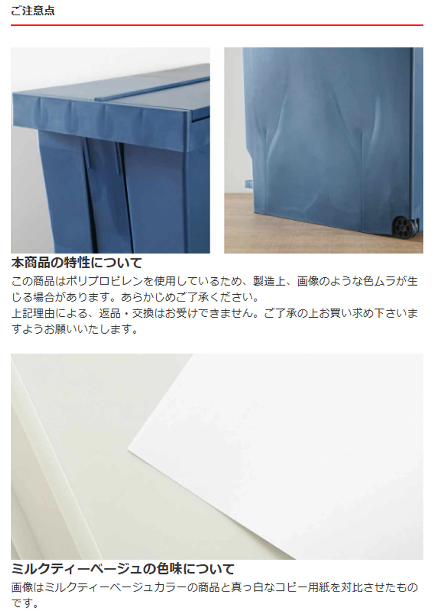 この商品はポリプロピレンを使用しているため、製造上、画像のような色ムラが生じる場合があります。あらかじめご了承ください。