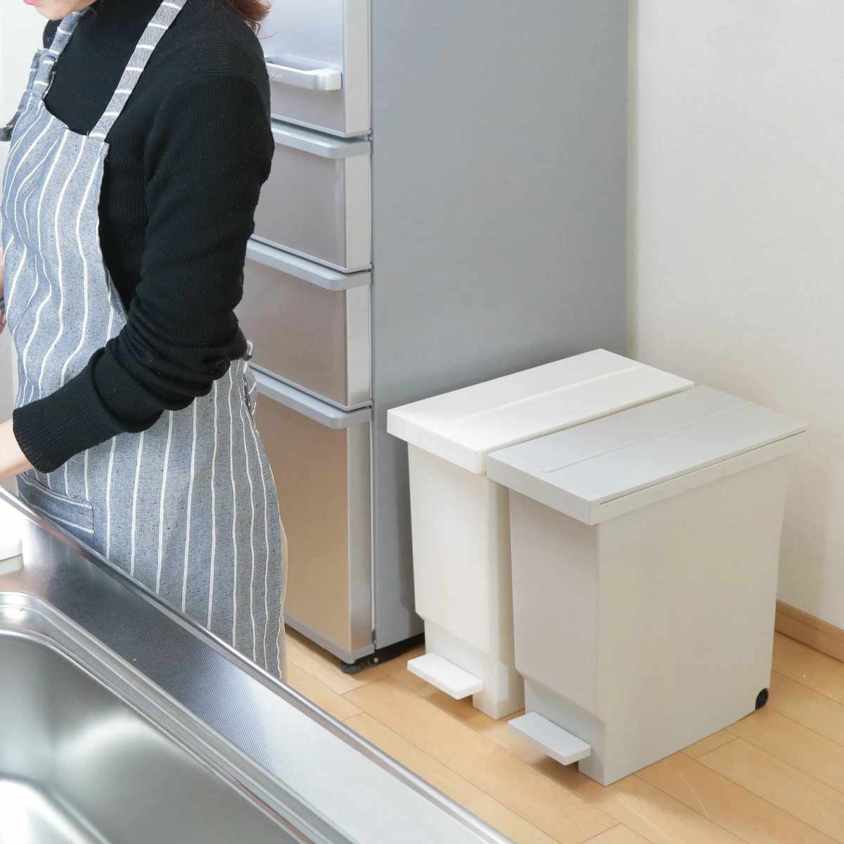 ●棚下にもスッキリおさまる、両開きふたのペダルペール32L同色2個セットです。