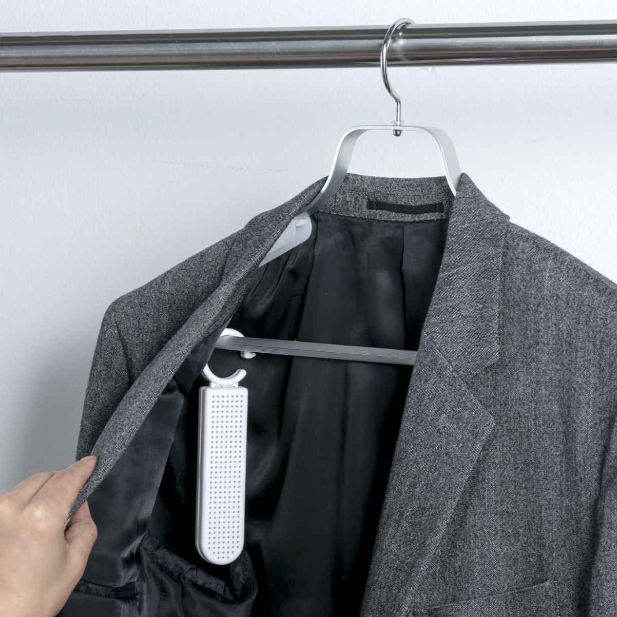 ニオイや湿気をコントロールする珪藻土ボールが汗や皮脂から大切な洋服、靴を守ります。ニオイや湿気がこもりがちなクローゼットや下駄箱におすすめです。