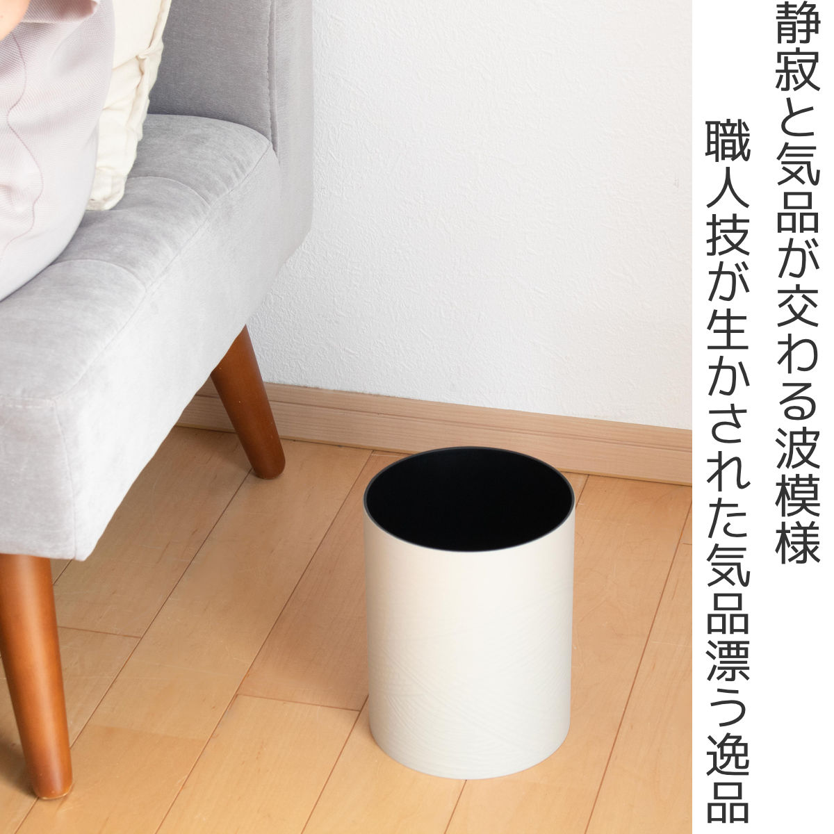 さざ波をモチーフに、塗り職人がひとつひとつ描き上げたダストボックスSサイズです。同じ模様がふたつとない、紀州漆器の職人技が生かされた逸品です。気品漂う雰囲気が感じられ、和室やリビング、どんな空間にも調和します。